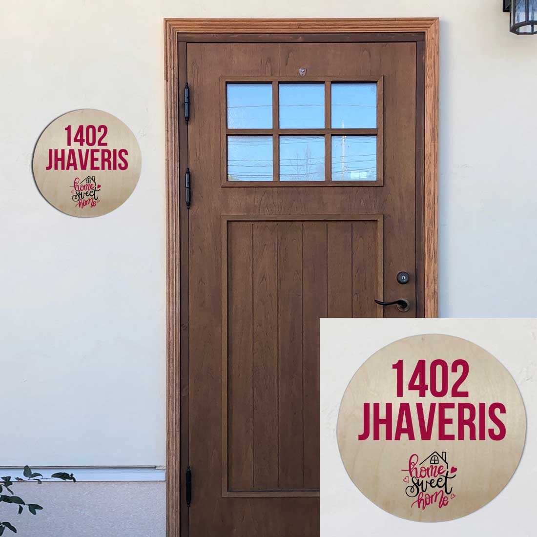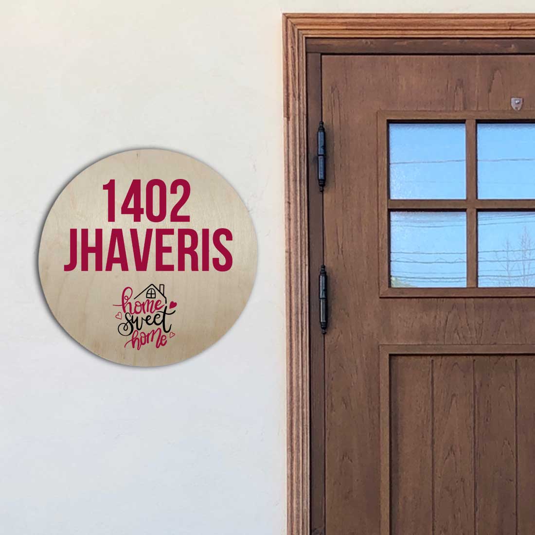 At Nutcase you’ll find the widest range of wooden, and acrylic name plate designs. From engraved to colorfully printed high quality name plates available in wood and acrylic (not particle board, not MDF). This colorful round name plates design with Home Sweet Home will add to the warmth and character of your home.
