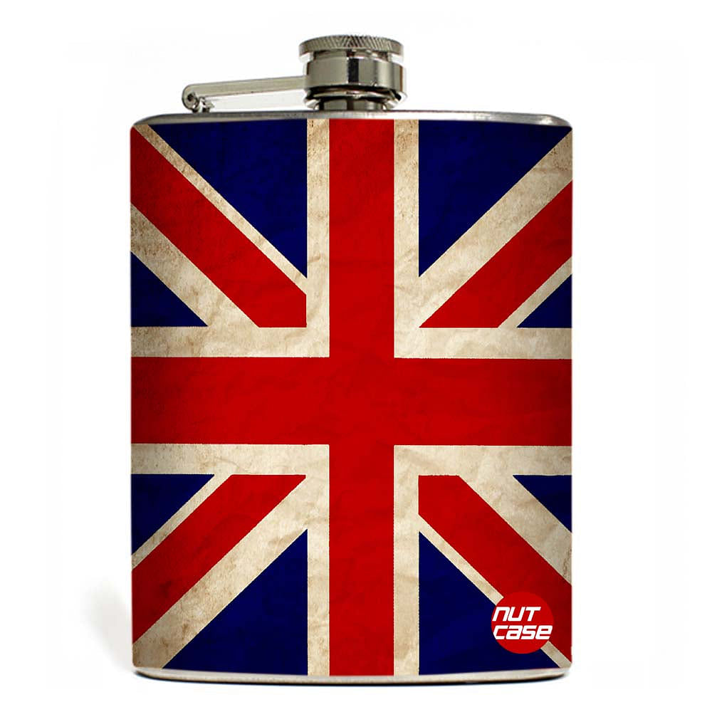 Designer Hip Flask 9 Oz- Nutcase - Free Funnel Along-Vintage Union Jack British Flag