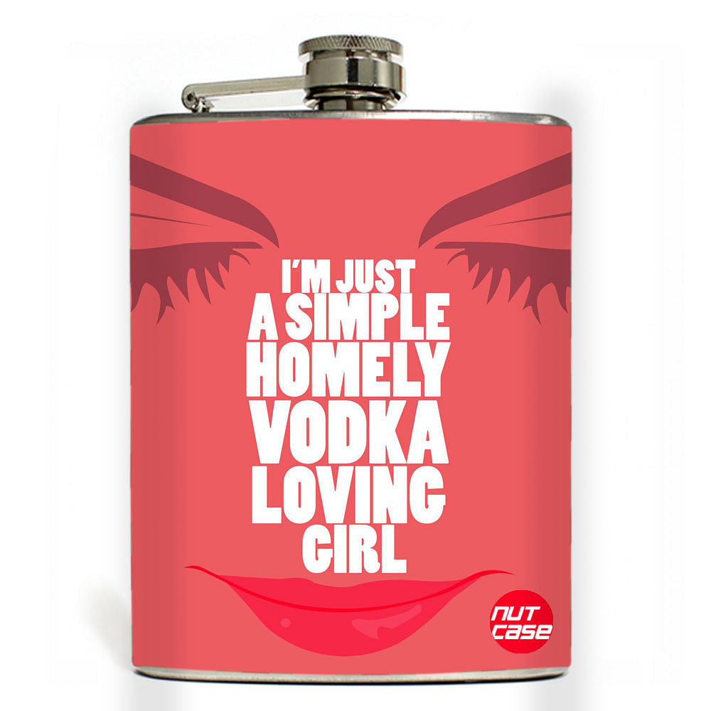 Designer Hip Flask 9 Oz- Nutcase - Free Funnel Along-Simple Homely Vodka Loving Girl