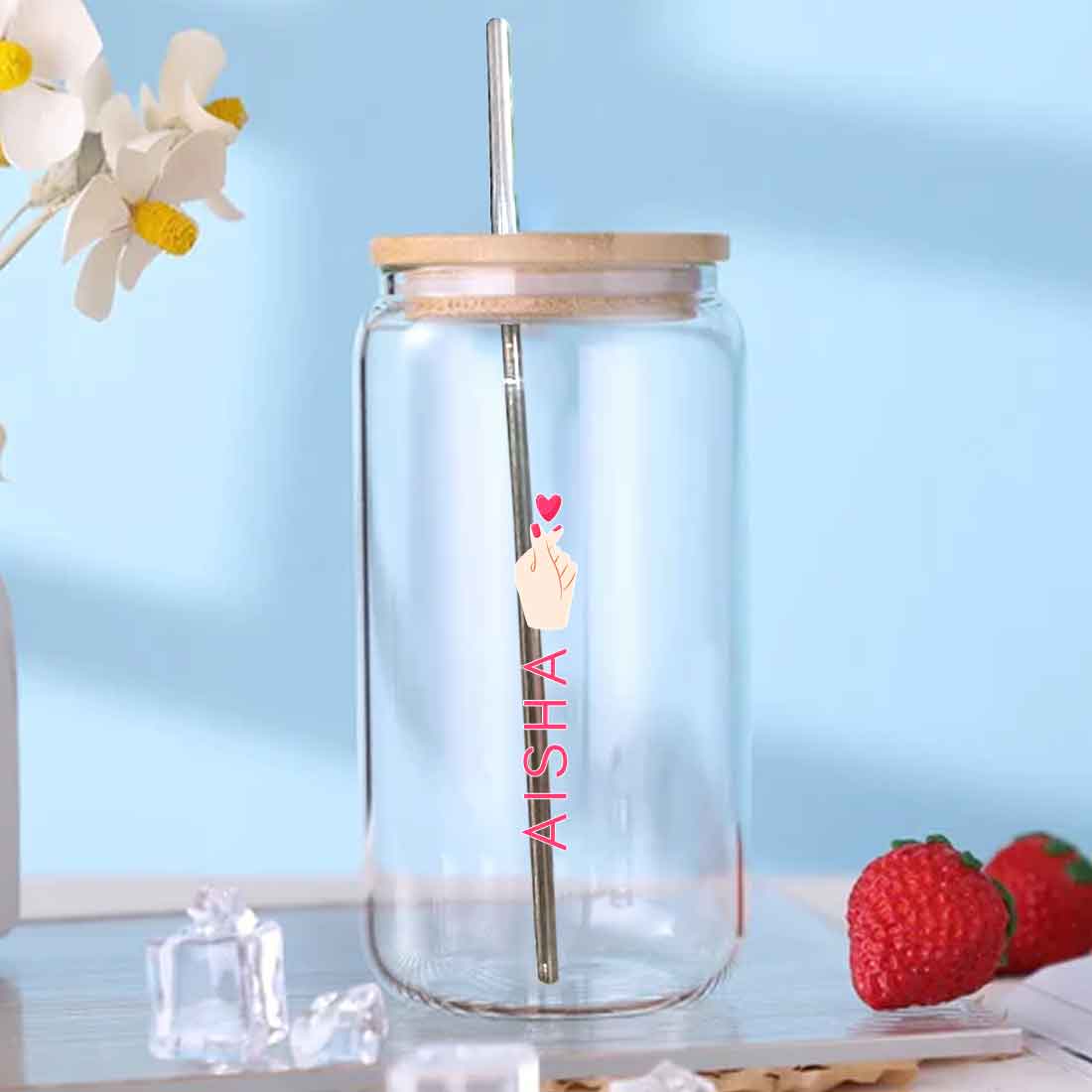 Sophisticated and practical, Nutcase Can Shaped Glass with Straw a finely crafted metal straw are both stylish and functional. With a generous 500 ml capacity and a wooden lid, this versatile glass is perfect for cold coffees, iced teas, and a range of other refreshing beverages. Personalize it with your name, initial or monogram for a unique touch and enjoy your favorite drink in ultimate style. The chic glass makes for a great gift for various occasions, including birthdays, Valentine's Day, Secret Santa, housewarming, or anniversaries.