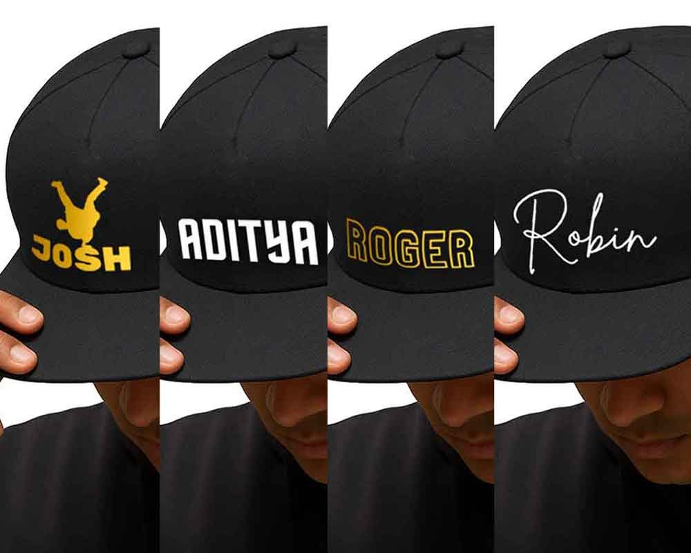 Personalized Hip Hop Caps with bold name designs for ultimate street style. Made from premium cotton with adjustable Velcro for all-day comfort.
