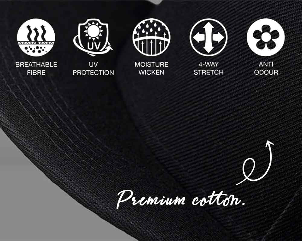 Crafted from high-performance fabric that’s breathable, UV-resistant, moisture-wicking, stretchable, and anti-odour. This cap is built for comfort, durability, and all-day freshness.