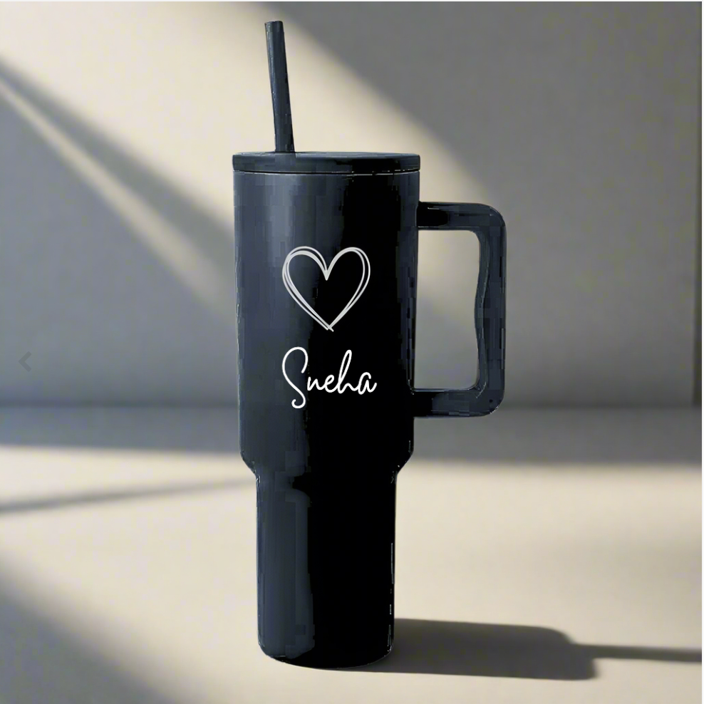 Nutcase Personalized tumbler with straw is a versatile 1200ml vacuum-insulated drinkware designed for both style and function. Crafted to keep your beverages hot for 6 hours or cold for 12 hours, this tumbler is designed to fit into your life perfectly. Fits perfectly in your car bottle holder or on your desk and provides you your daily hydration in style. Its leak-proof lid ensures no spills. The ergonomic handle and straw make it convenient to use.