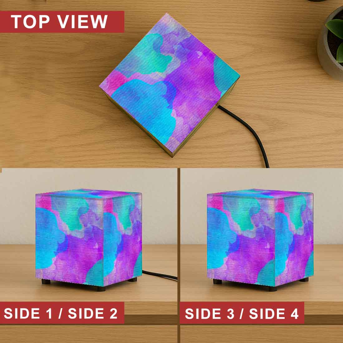 Nutcase Designer Table Lamps for Bedroom – Mini LED Cube Lamp for Home - Water Color