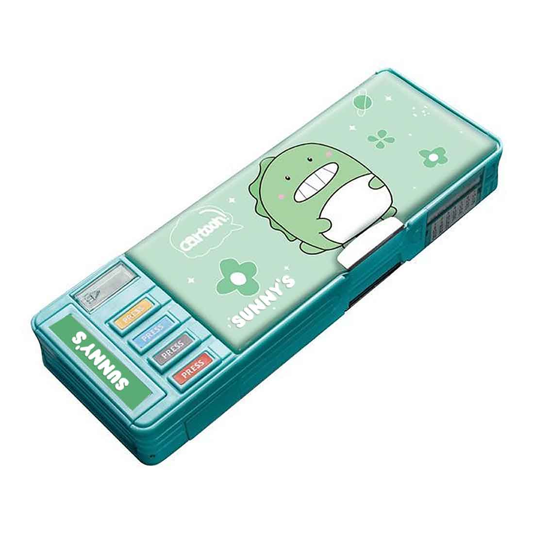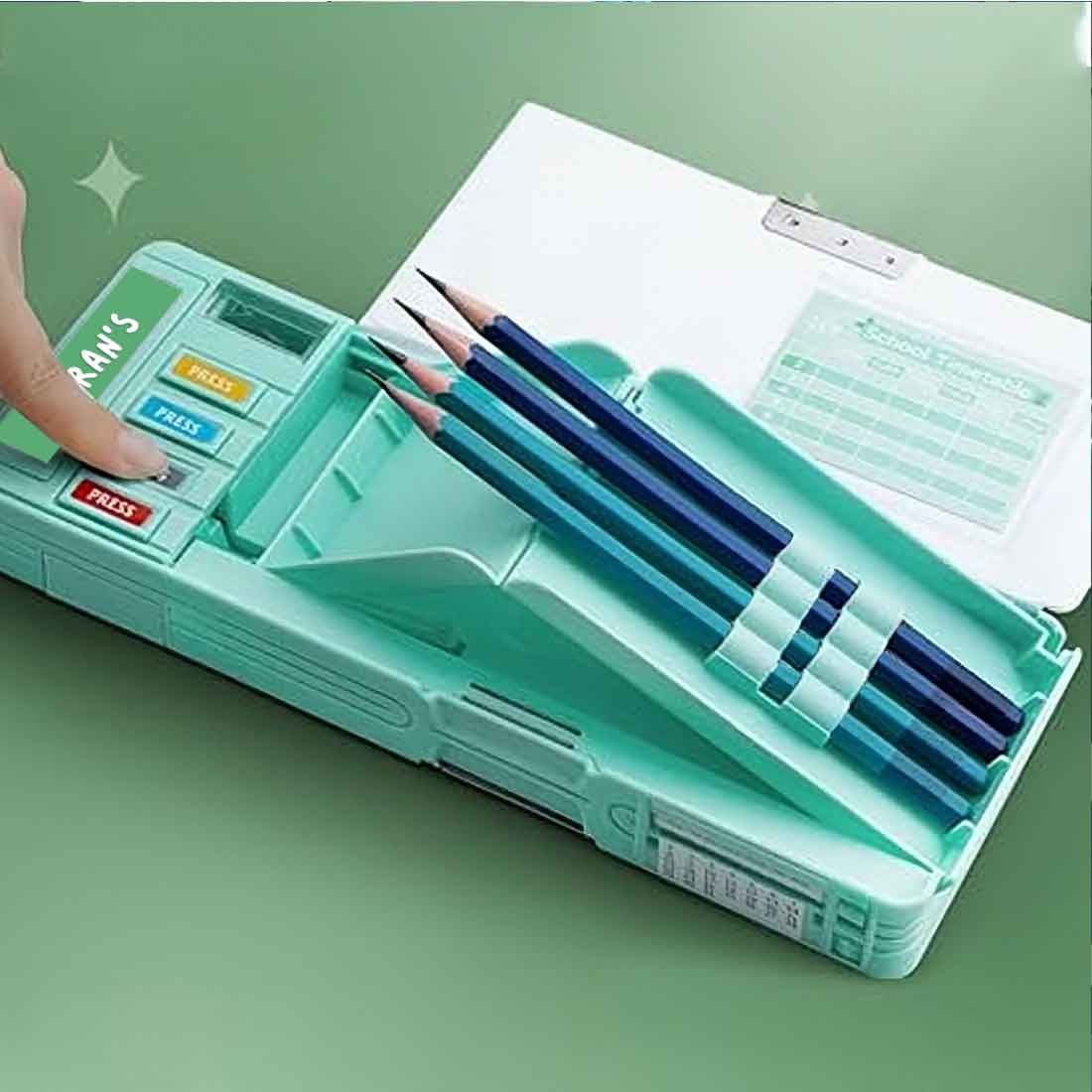 Nutcase Pencil Box with Name Switch Operated Multi-functional Compass Box for Kids with Press buttons