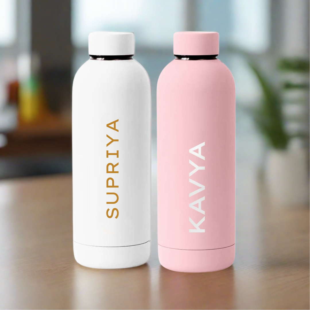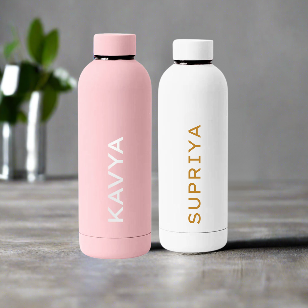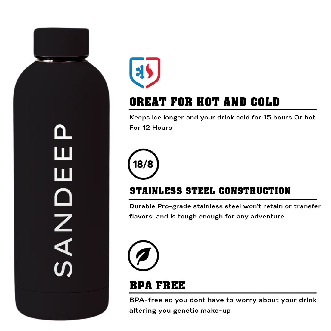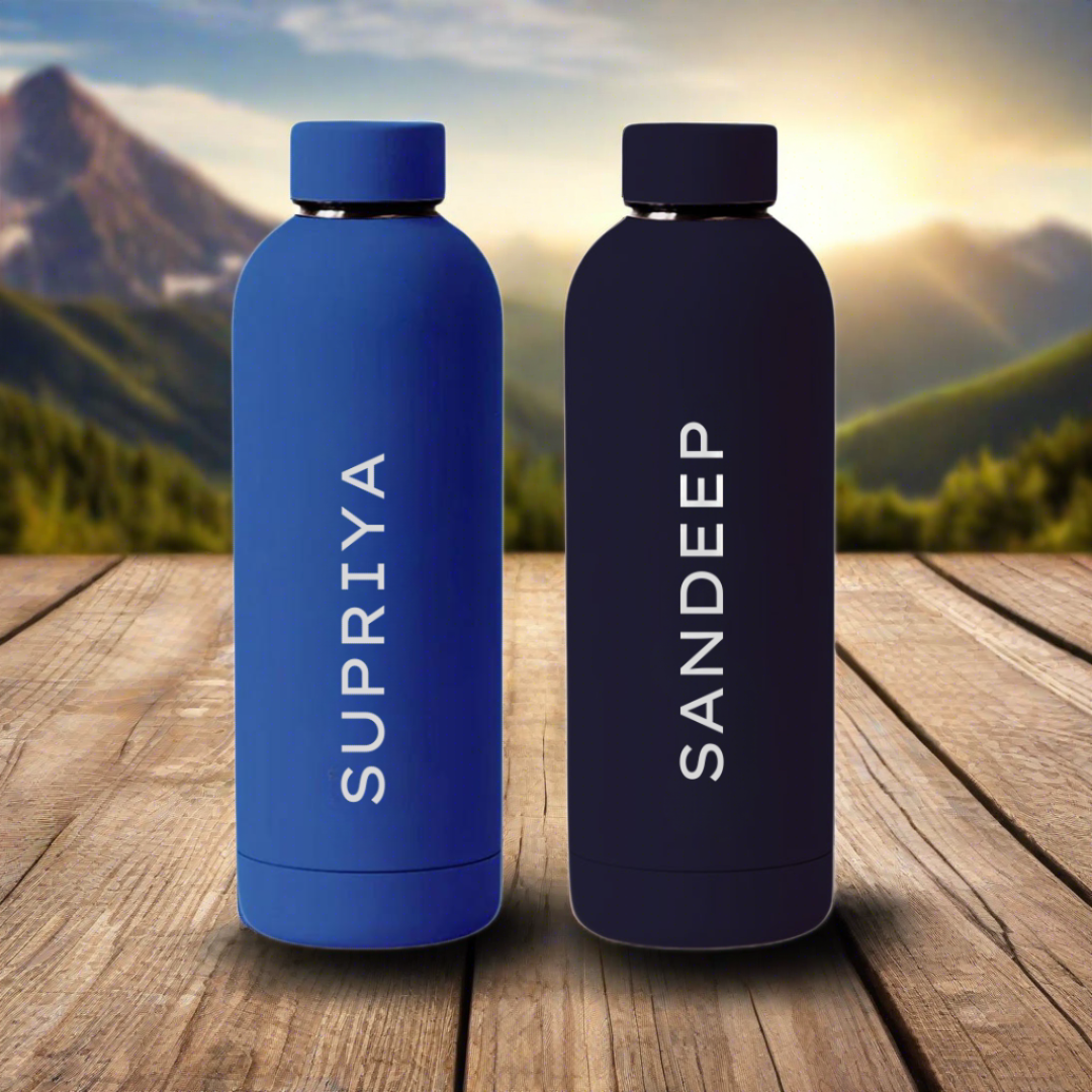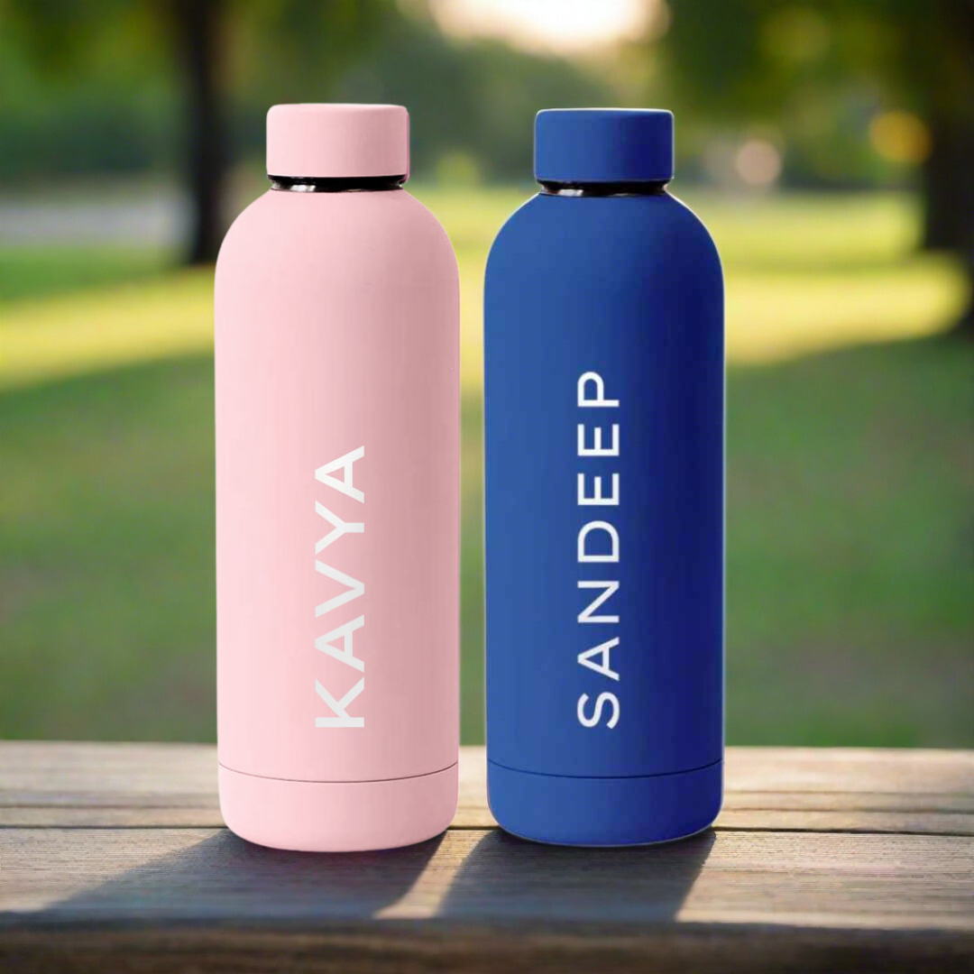 Nutcase Customized Water Bottles with Names are stylish and sturdy with luxuriously soft finish, BPA free, leakproof, double insulated - made with high grade stainless steel. These 500ml double-insulated stainless steel personalized bottles feature a luxurious finish, are BPA-free, leakproof, and designed to keep your beverages hot or cold for extended periods.These 500 ml bottles are perfect for home, office or travel-carry them in your handbag/backpack.