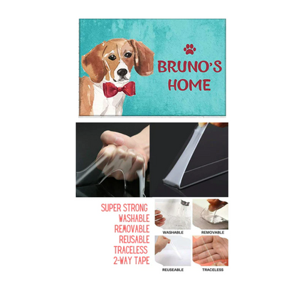 Say Goodbye To Old Fashioned Boring Beware of Signs and choose a cute and quirky Custom Dog Door Name Plate. This cute Custom Dog Door Name Plate is made from study sunboard with a waterproof design material wrapped around it. Perfect to hang on gates or outdoors. Size - Width 12 inches x Length 8 inches x Depth 0.5 inches.