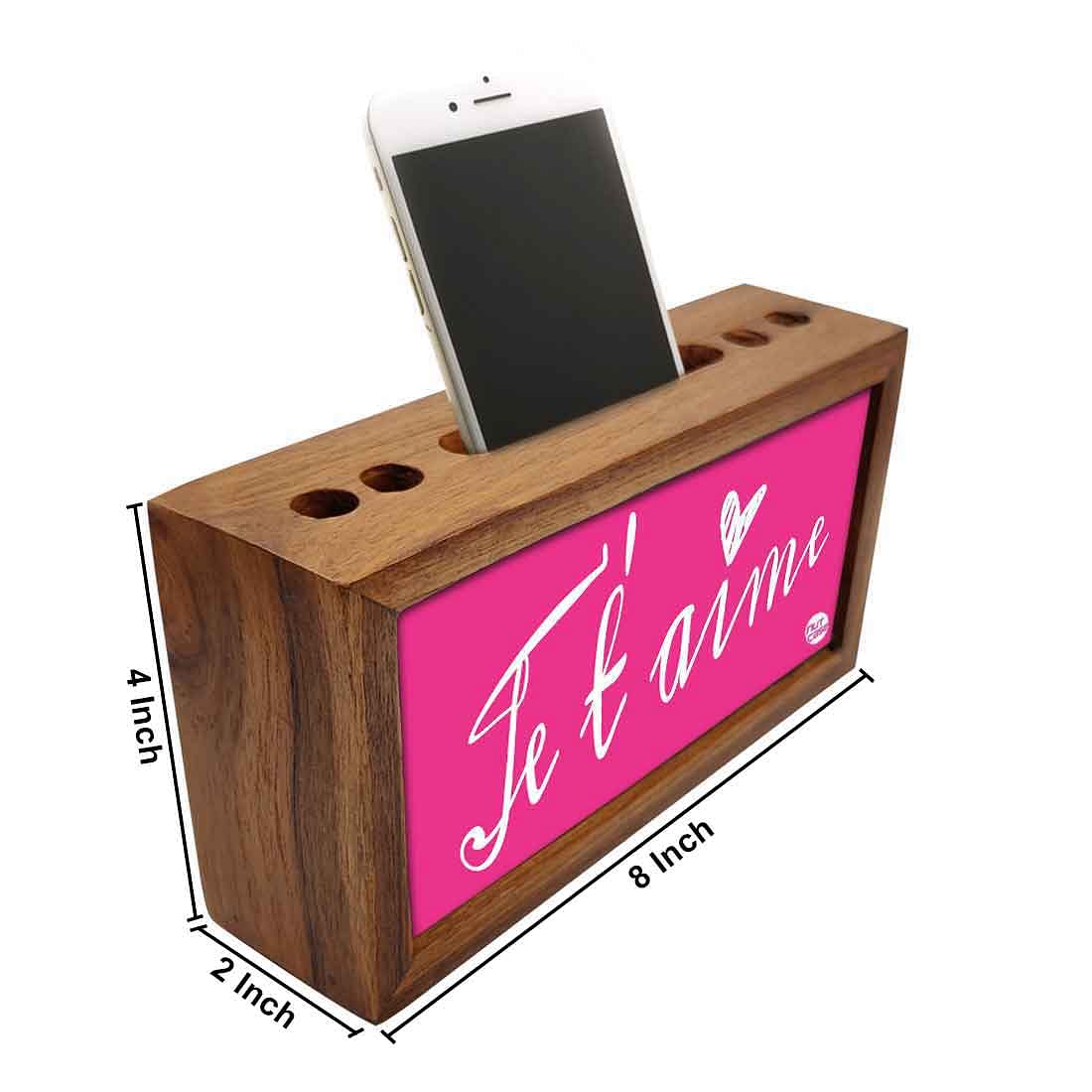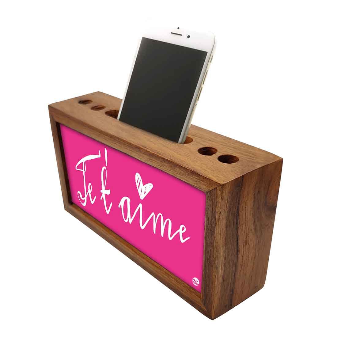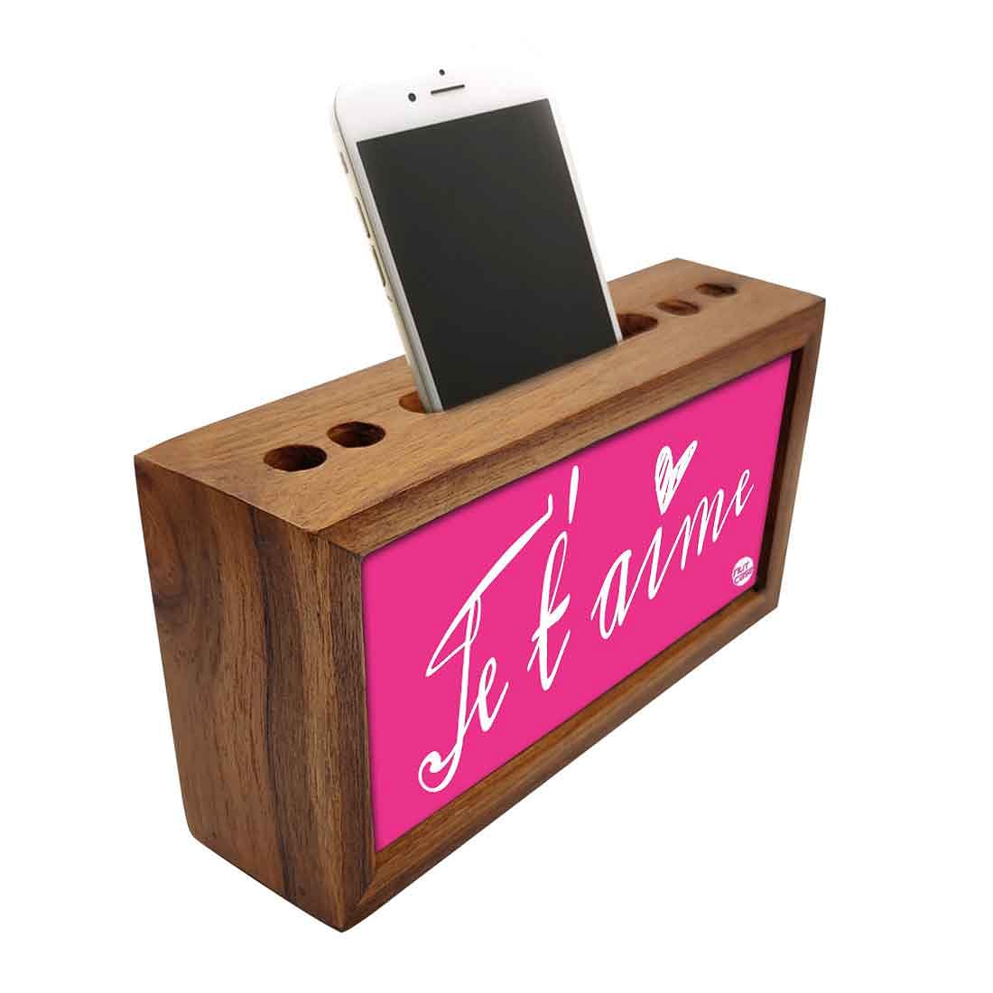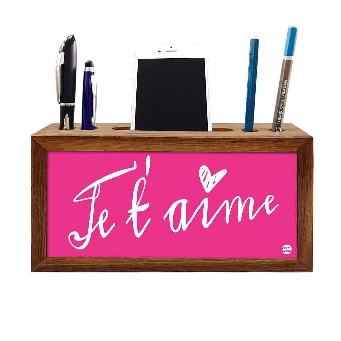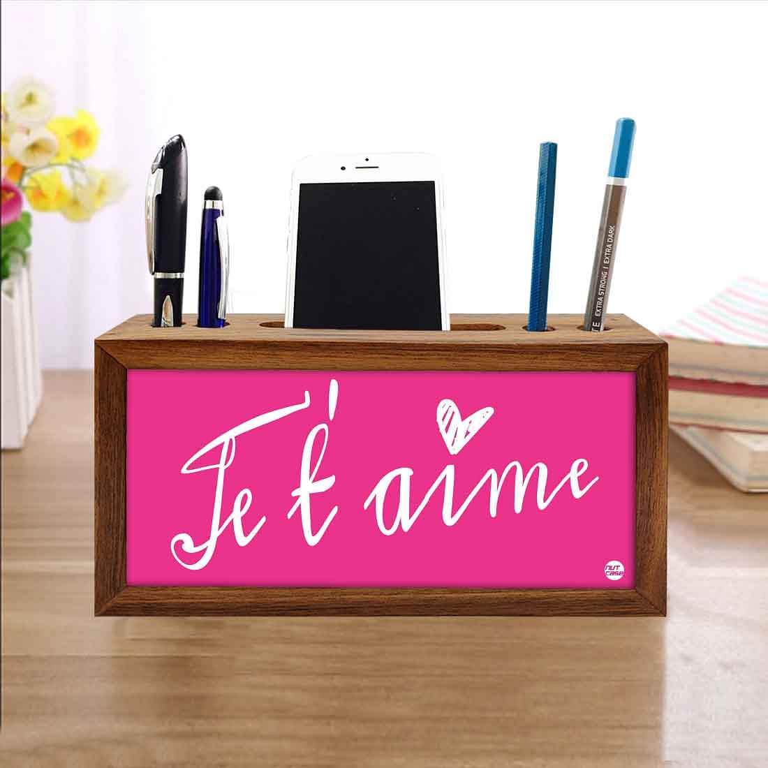 Wooden Phone and Pen Holder Table Organizer for Office - Je t'aime