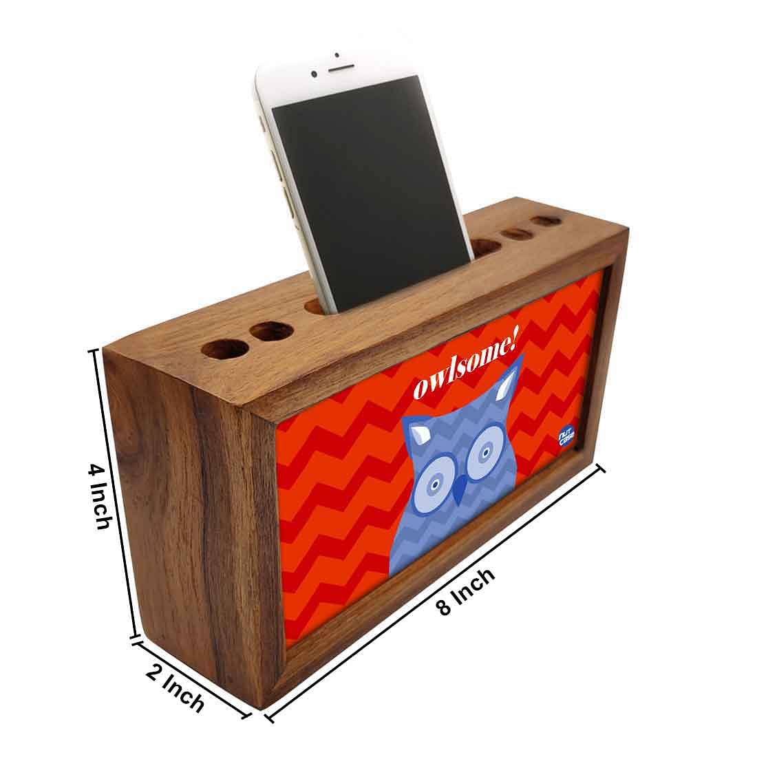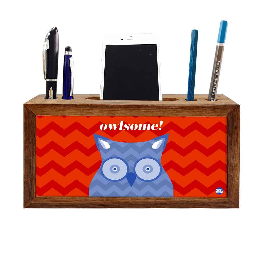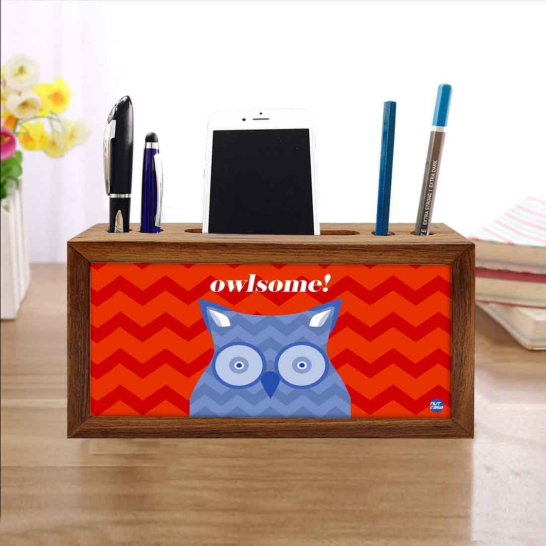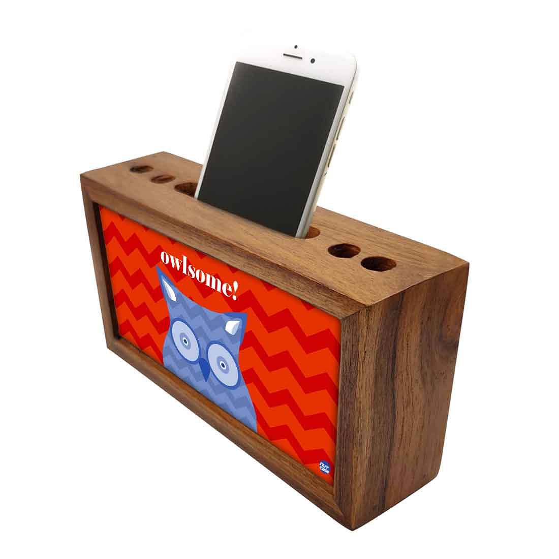 Wooden stationery organizer Pen Mobile Stand - Owlsome