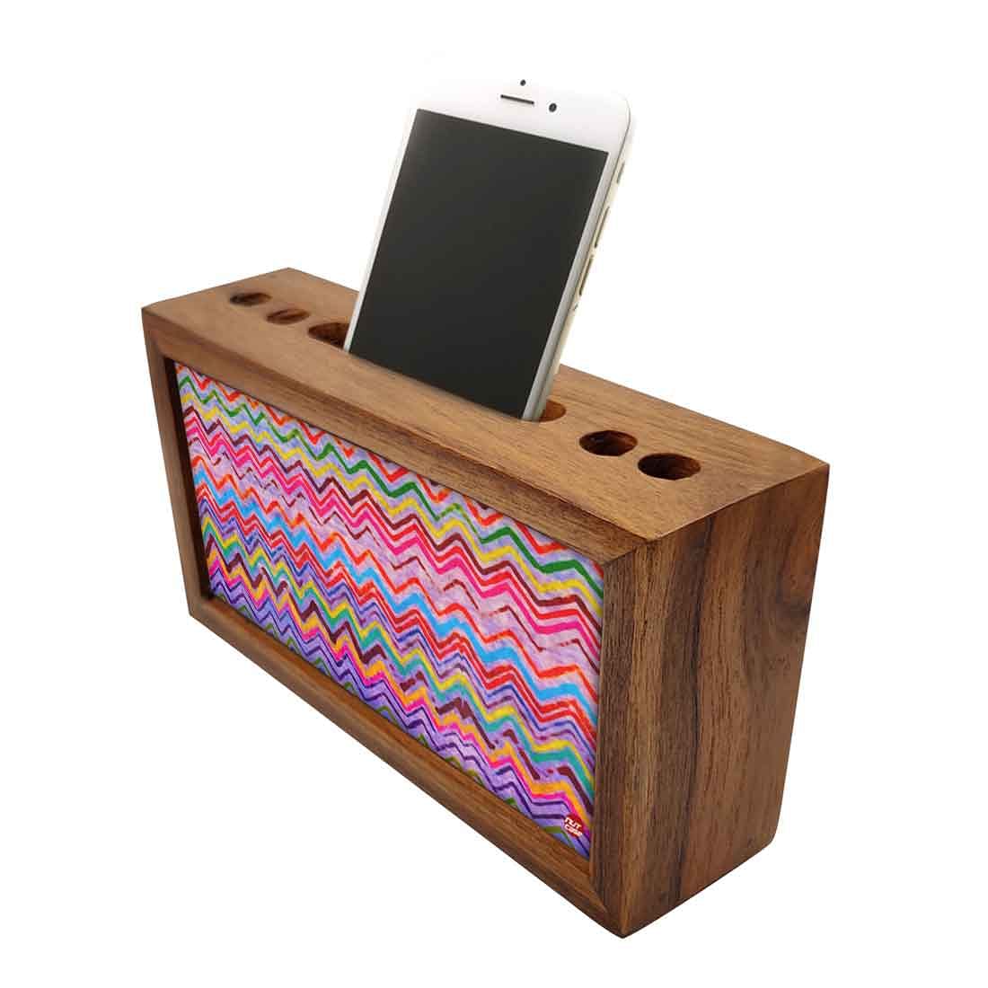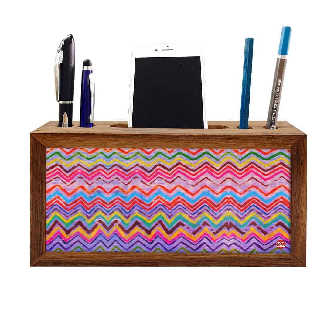 Wooden pen organizer Mobile Stand - Tapestry Zag