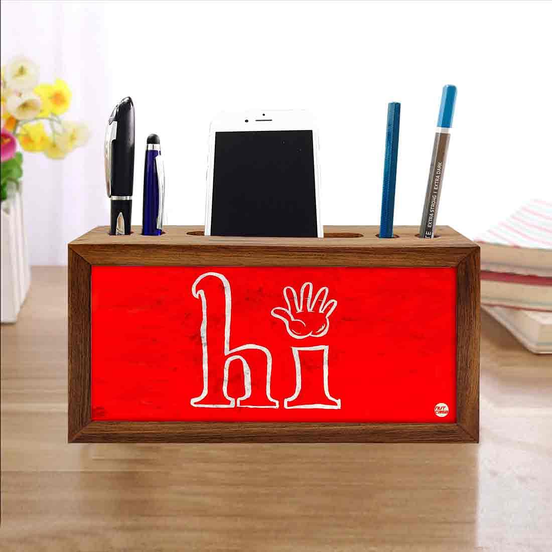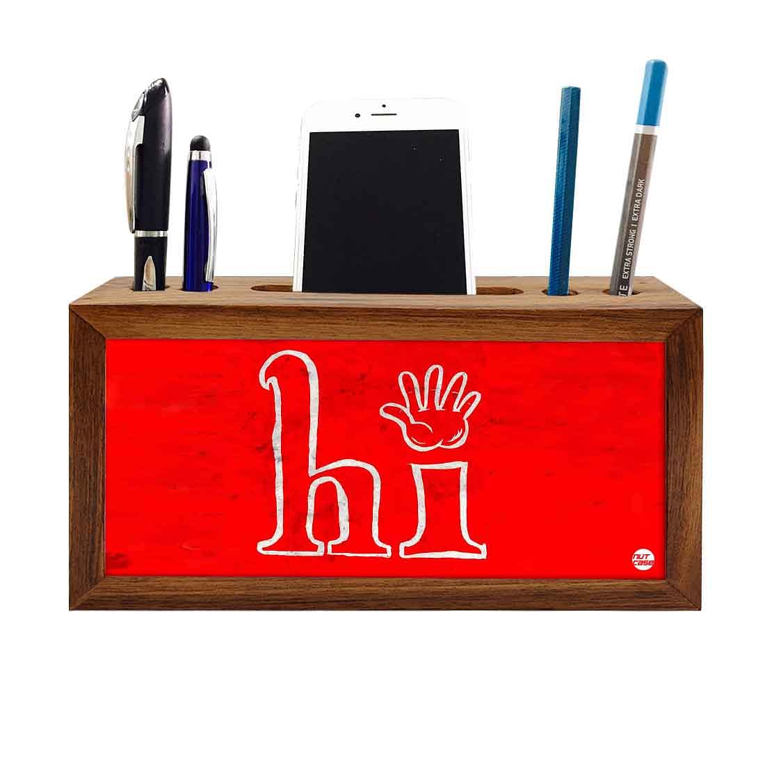 Wood Desk Organizer Pen Mobile Holder for Office - Hi