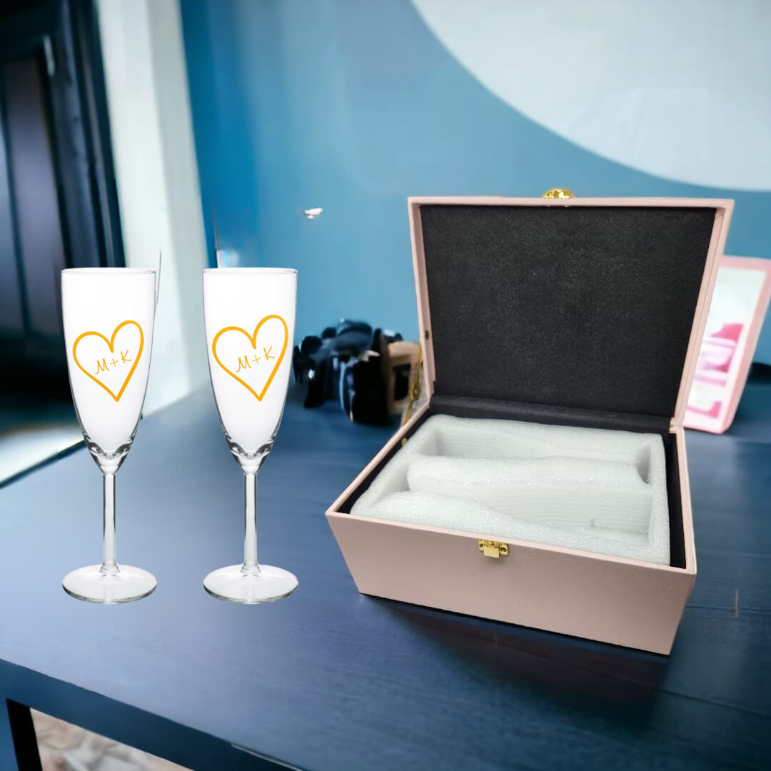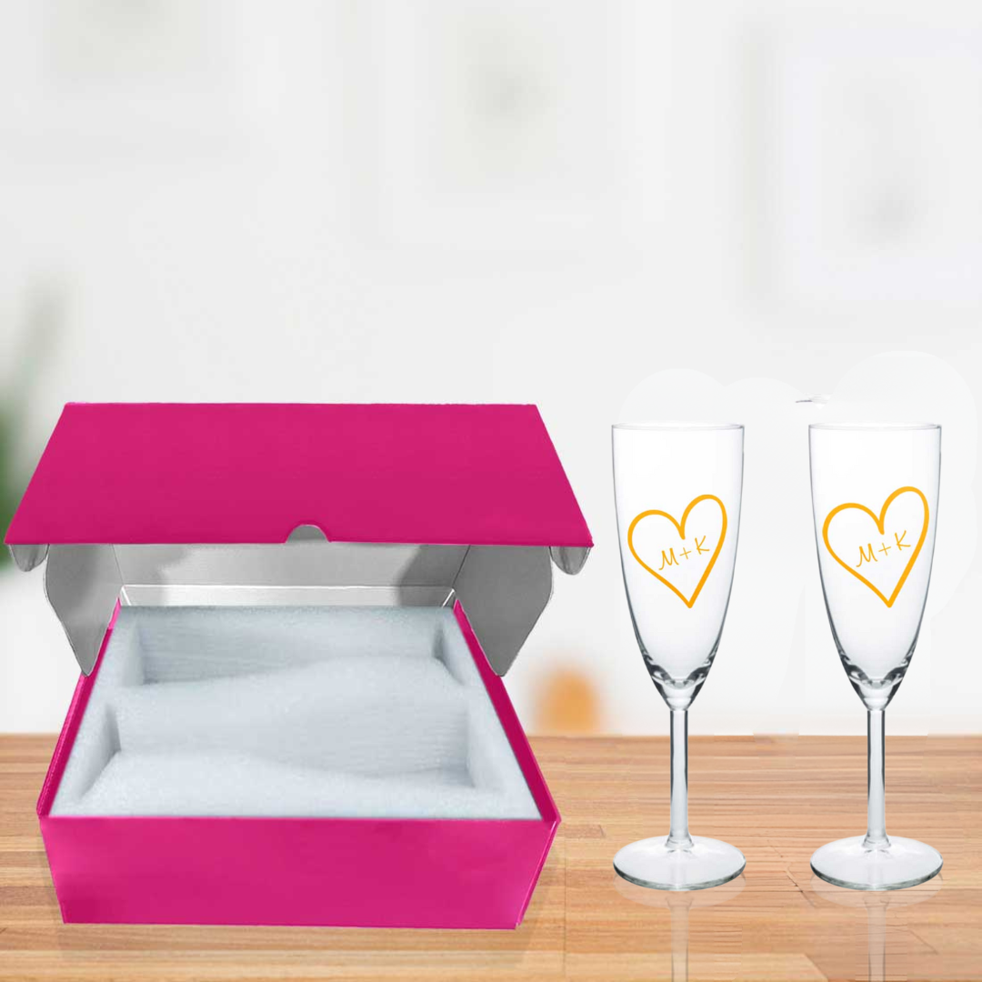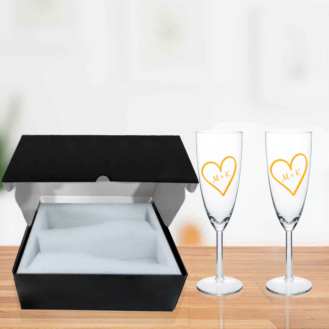 Nutcase Personalised Champagne Glasses can make a good occasion great. These high quality glasses are made with ultra clear glass and are personalized to your choice, be it your name, initials or monogram. From anniversary to birthday, valentines day to mothers or fathers day, these flute glasses are a perfect all-occasion perfect gift. Set Of 2 Custom Glasses