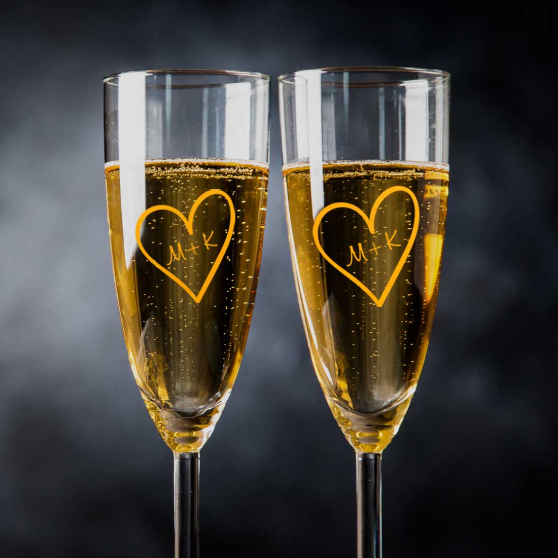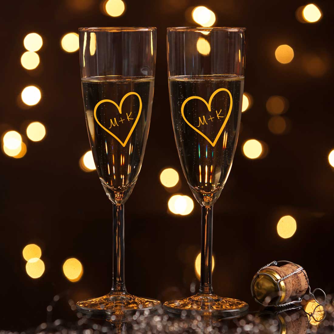 Personalised Champagne Glasses Flute Glass Set of 2 Anniversary Gift Idea - Sweethearts