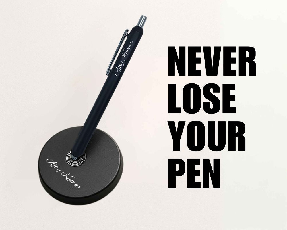 With its magnetic base, this personalized pen stays right where you need it — no more searching around your desk