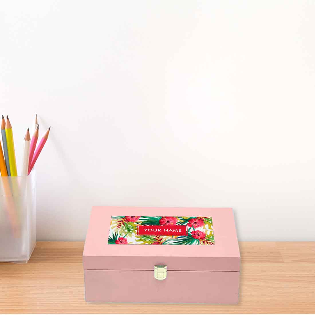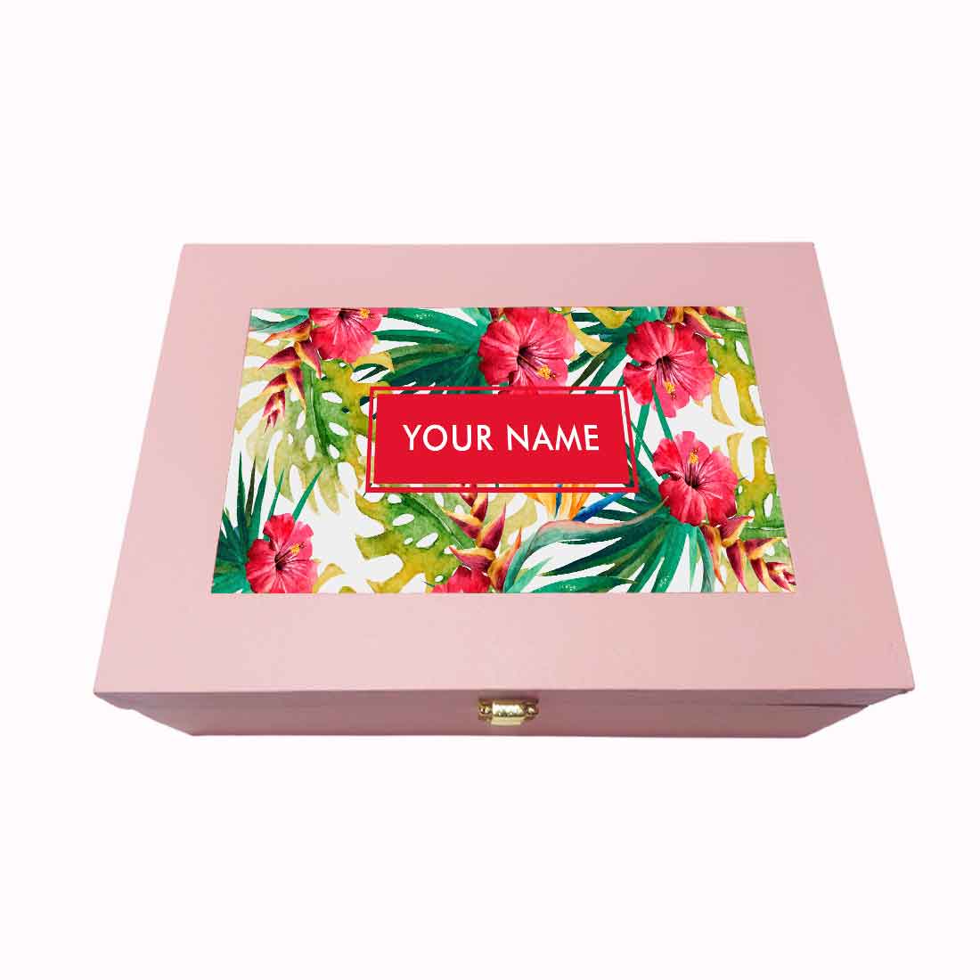 Personalised Box for Men Premium Vegan Leather Box - Hibiscus & Leaf