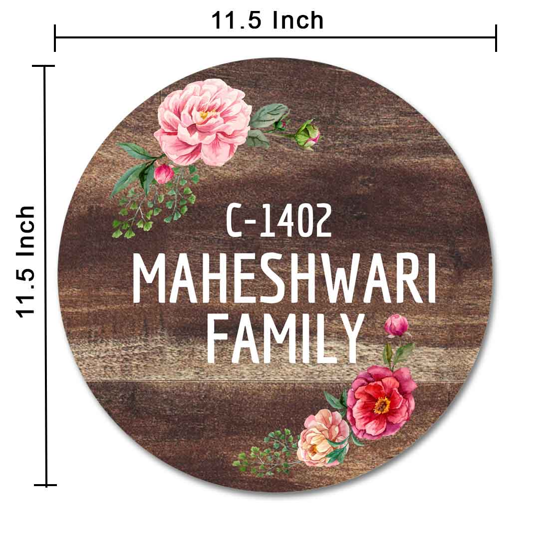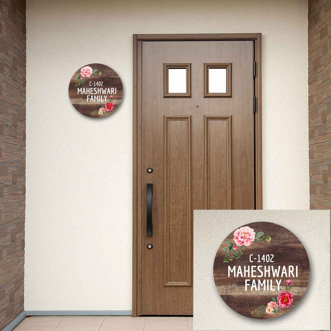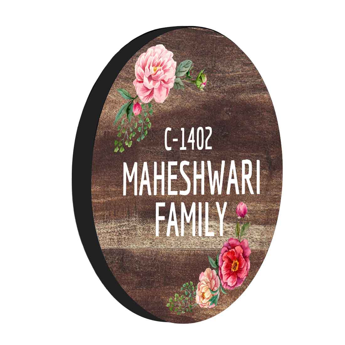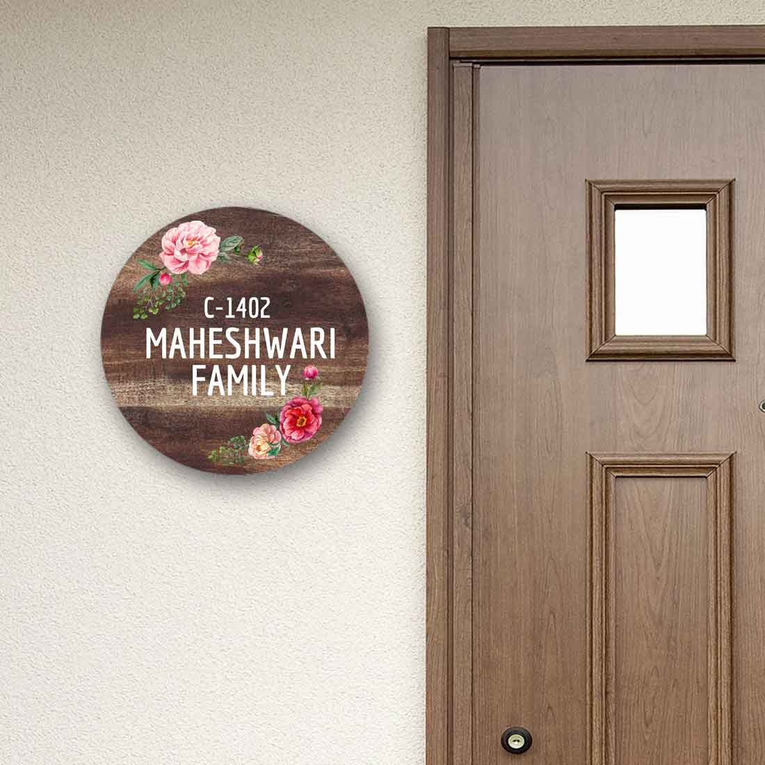 Personalized Door Round Name Plate for Home Flats Bungalow - Classic Floral