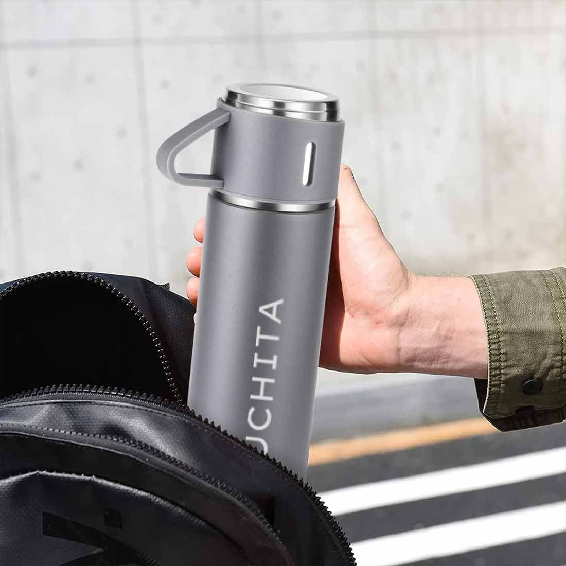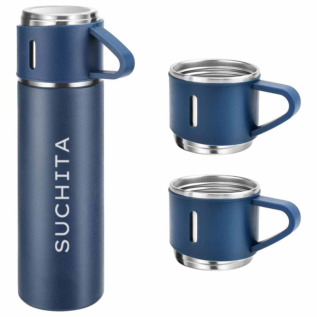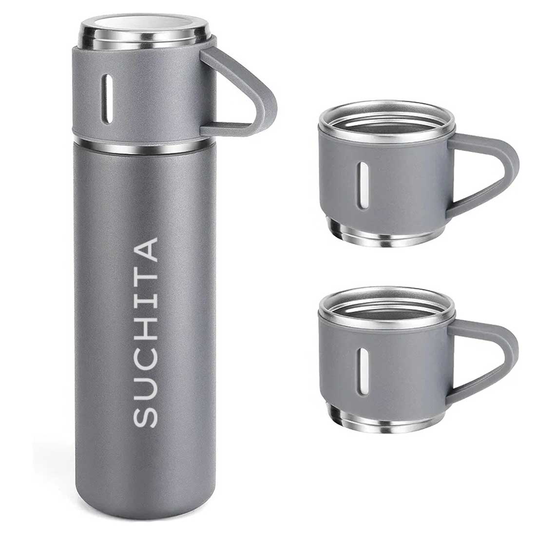 - Flask Size with Cup: 9.4-inch x 2.6-inch; Cup Size: 2.6-inch x 2.3-inch; Capacity: 500ml