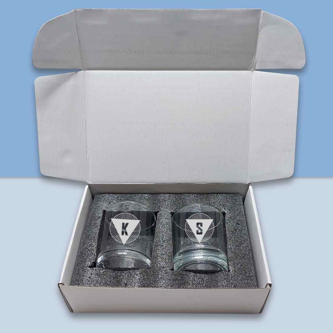 Pretty Personalized Whiskey Glass - Gift For Him Husband Boyfriend - Monogram Triangle