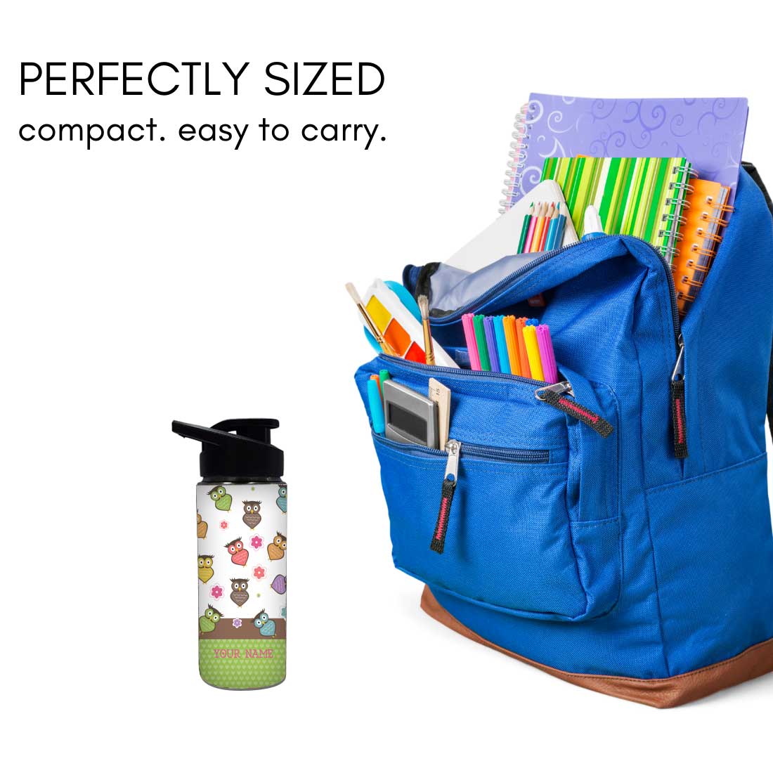 These stainless steel bottles are wrapped with proprietary waterproof, fade-free, easy to clean design. Just Add the name, initial  and you will receive a beautiful personalized water bottle that your kid will love at your doorstep.