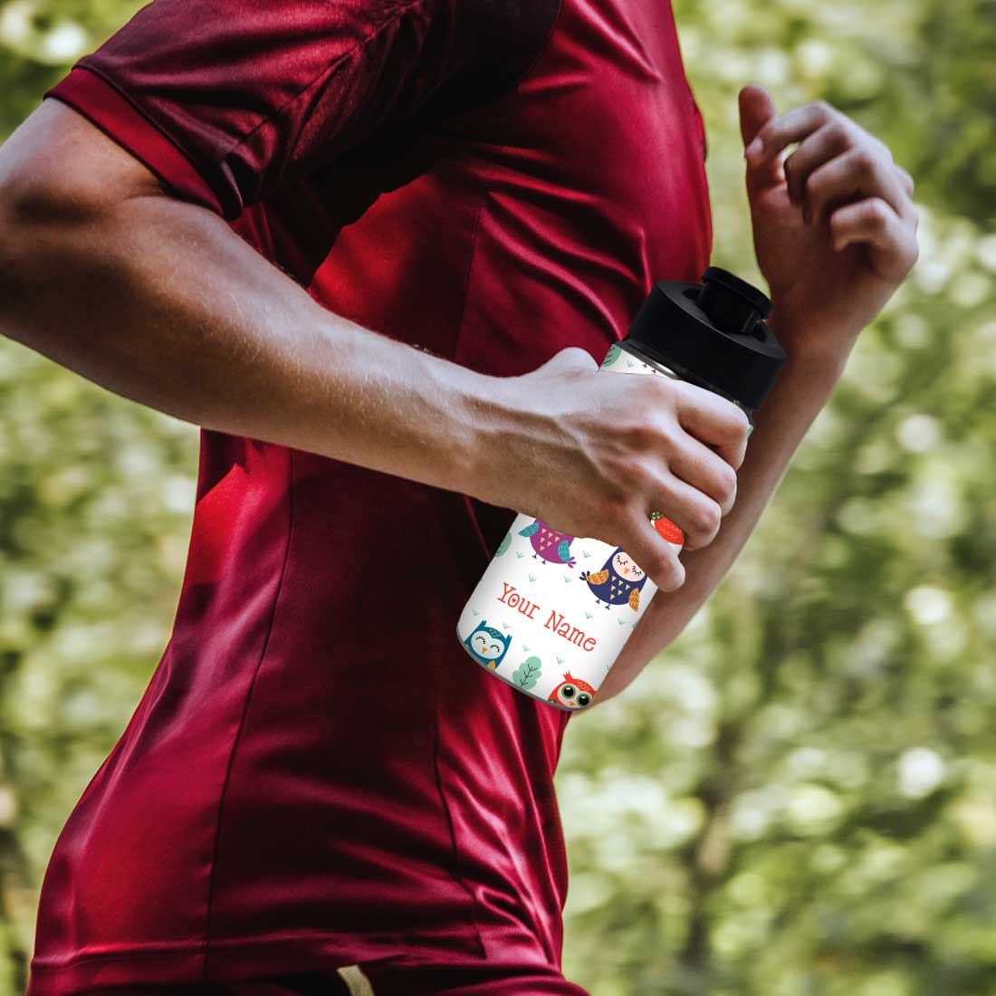 Our 550 ML personalized water bottles are made from stainless steel comes with a waterproof film which is pasted on the bottle using a waterproof adhesive. The bottle can be wash easily without any affect to the print.