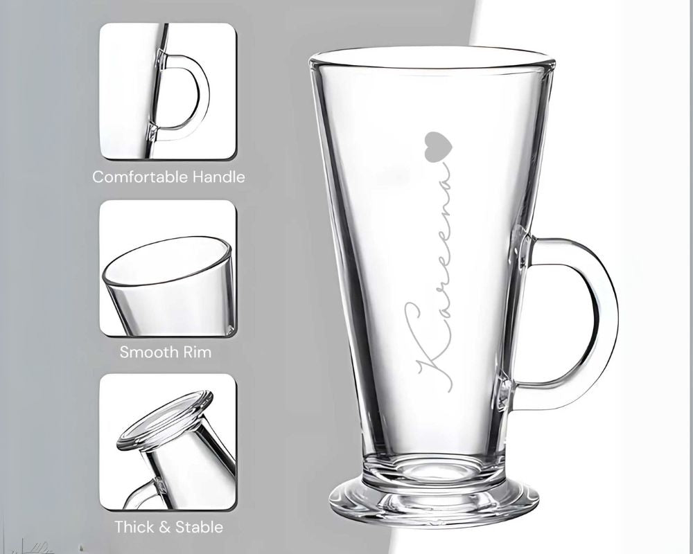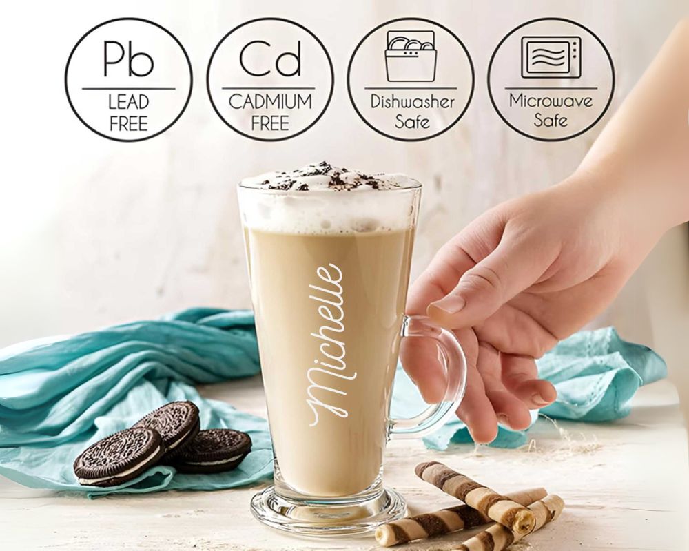 Experience the elegance of Nutcase's Personalized Coffee Mugs, crafted from lead-free glass for safe enjoyment of any beverage. Customize these stylish, microwave-safe mugs with your name or initials for everyday luxury or a perfect gift.
