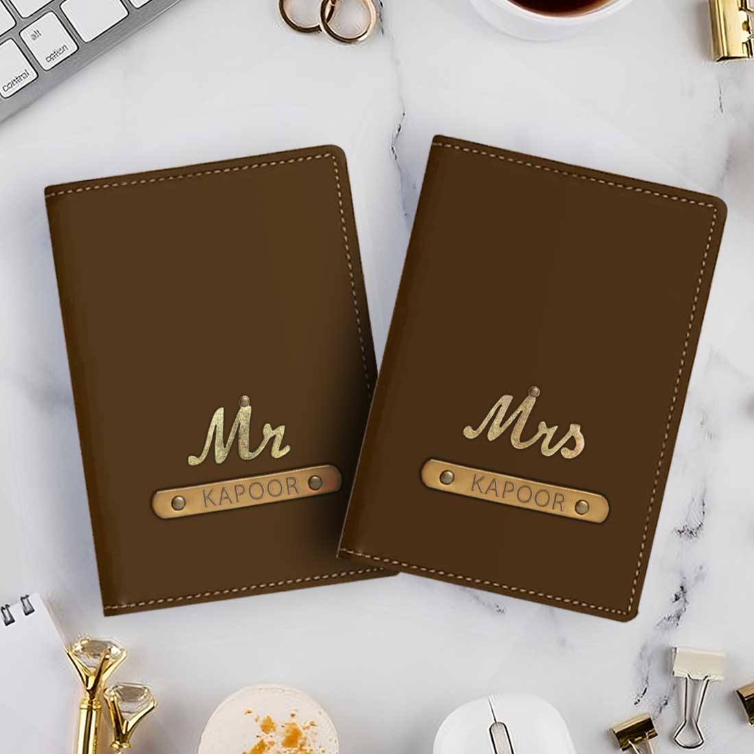 Personalized Name Mr & Mrs Passport Cover for Couples Travel Gifts with Charm