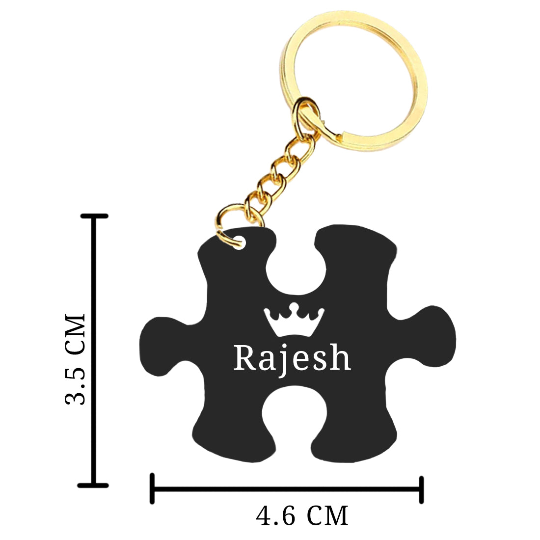 Personalized Couples Keychain Acrylic Puzzle Piece Set of 2 - KING QUEEN