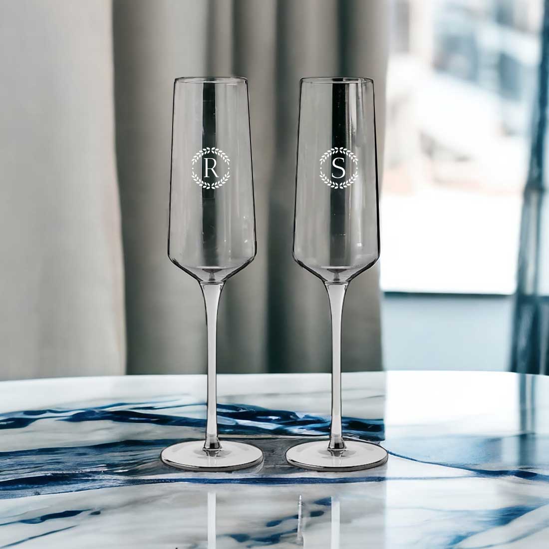 Personalized Engraved Champagne Flutes - Premium Champagne Glass with Name