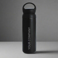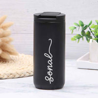 We use a stainless steel black hip flask and the details are engraved on the flask.