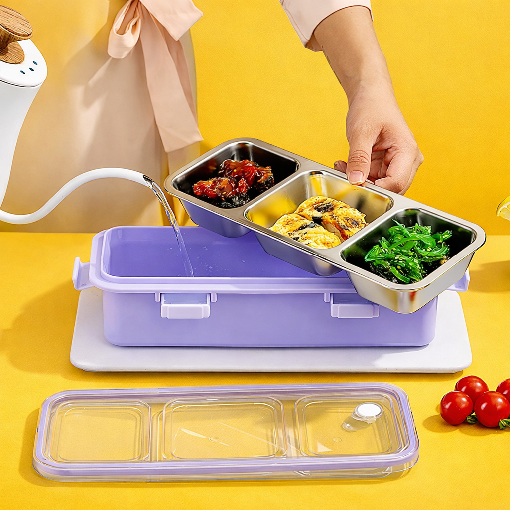 Separate stainless steel sections keep meals fresh, organized, and perfectly portioned. Ideal for carrying dry and semi-wet foods without mixing.