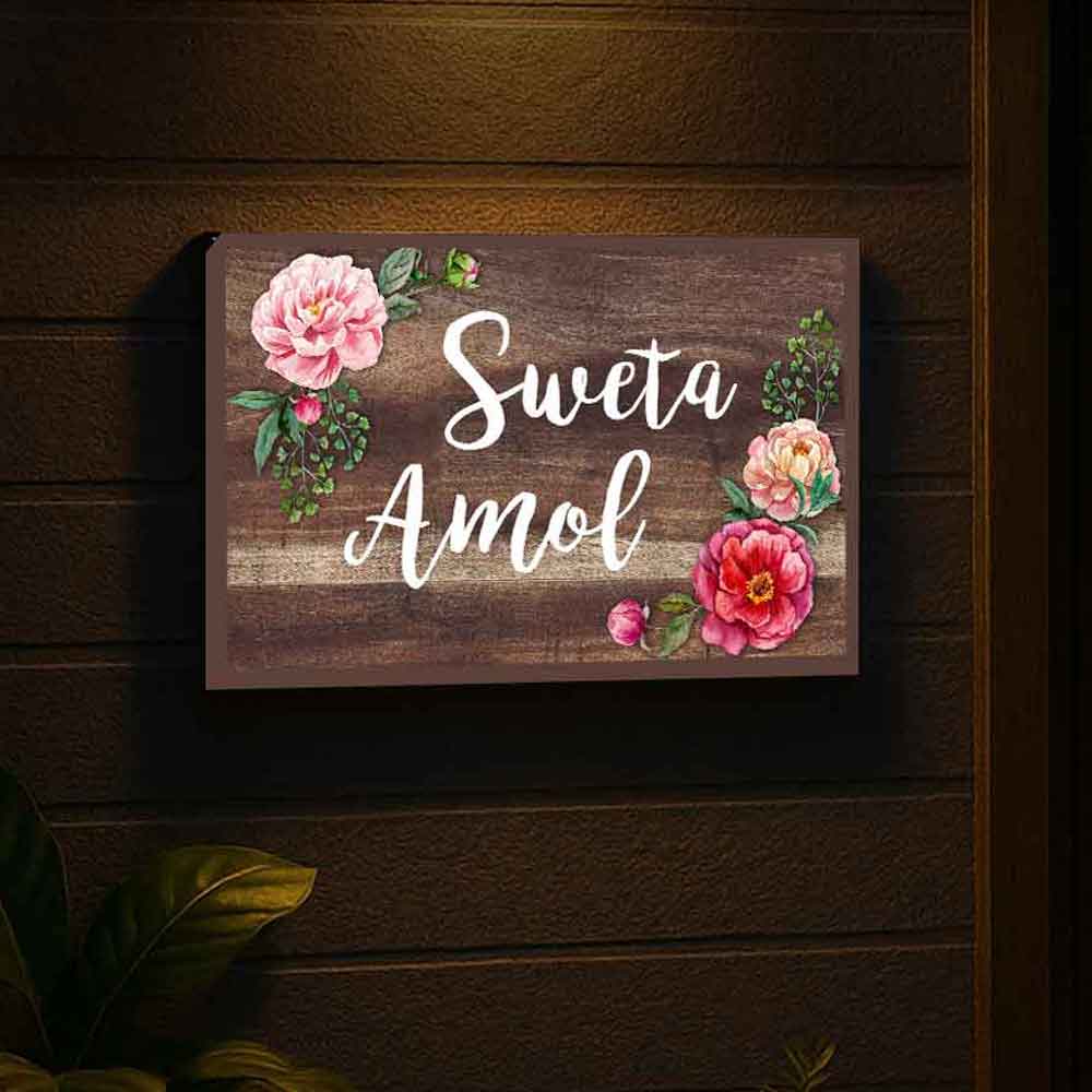 Personalized LED Name Plate for Home Elegant Entrance Signage - Floral Roses