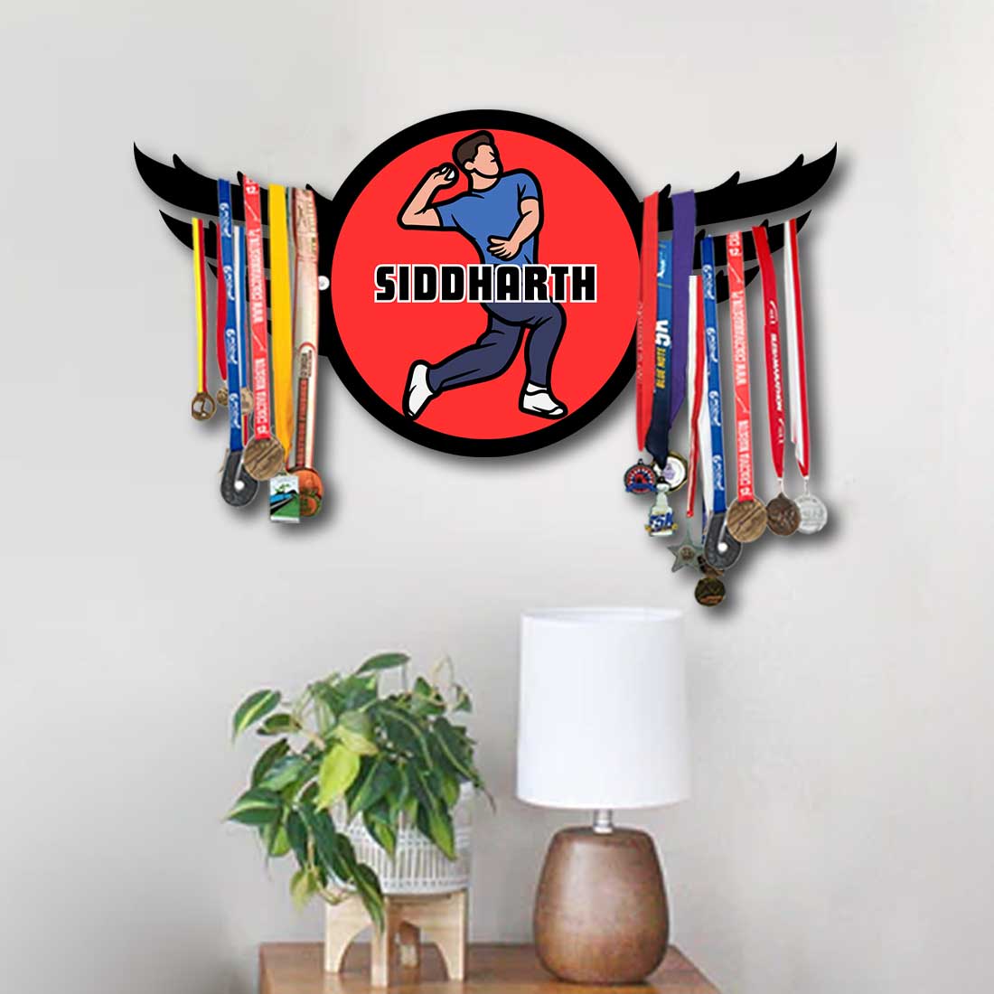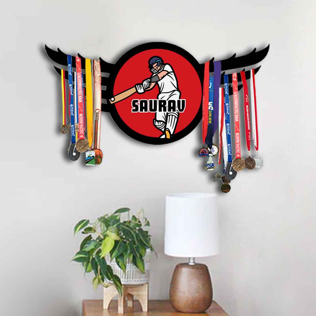 Personalized Medal Hanger for Wall Metal Medal Organizer - Cricket