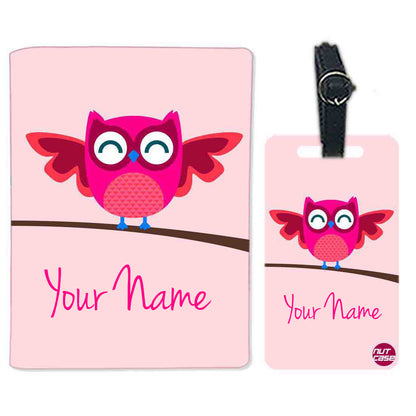 Customized Passport Cover Luggage Tag Set - Pink Owl