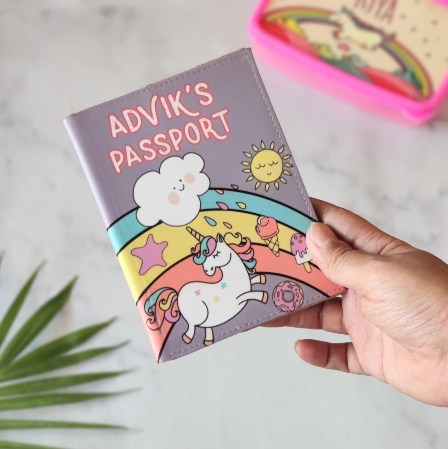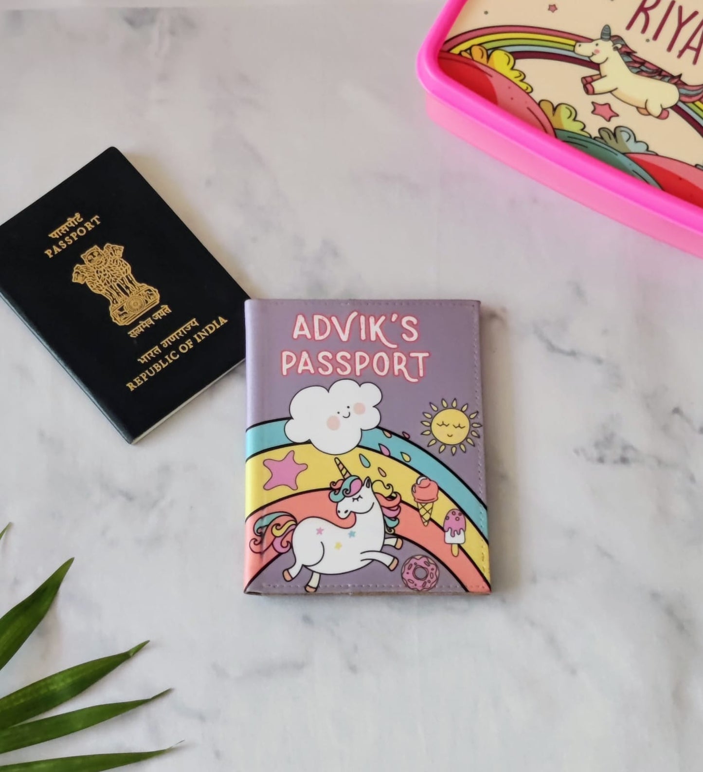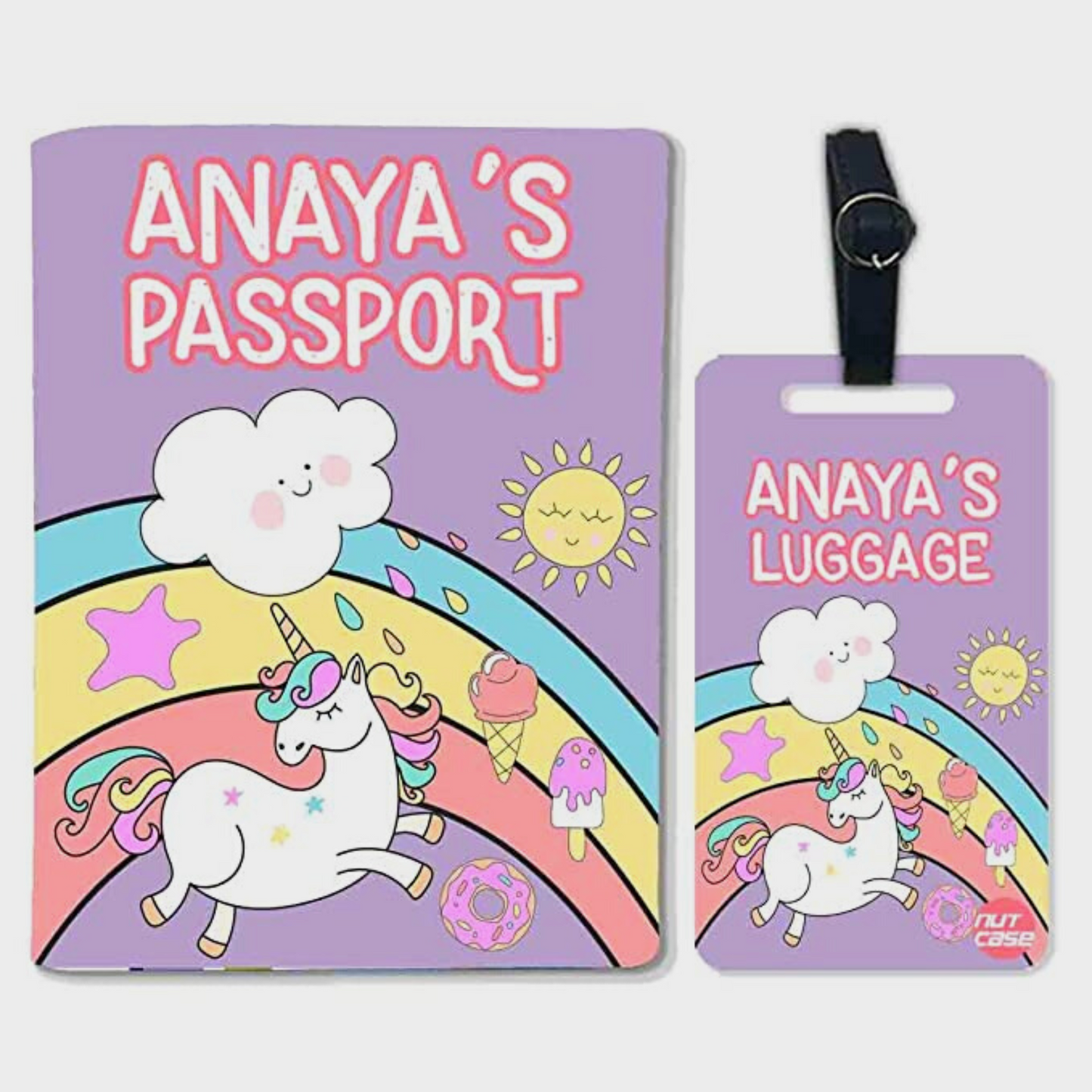Personalised Passport Cover Baggage Tag Set - Unicorn and Rainbow