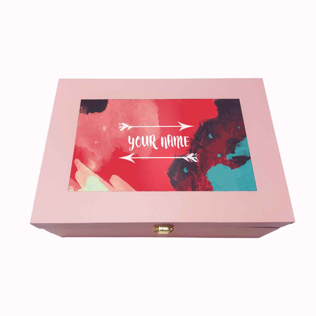 Custom Pink Gift Box with Name for Women Girlfriend - Watercolor