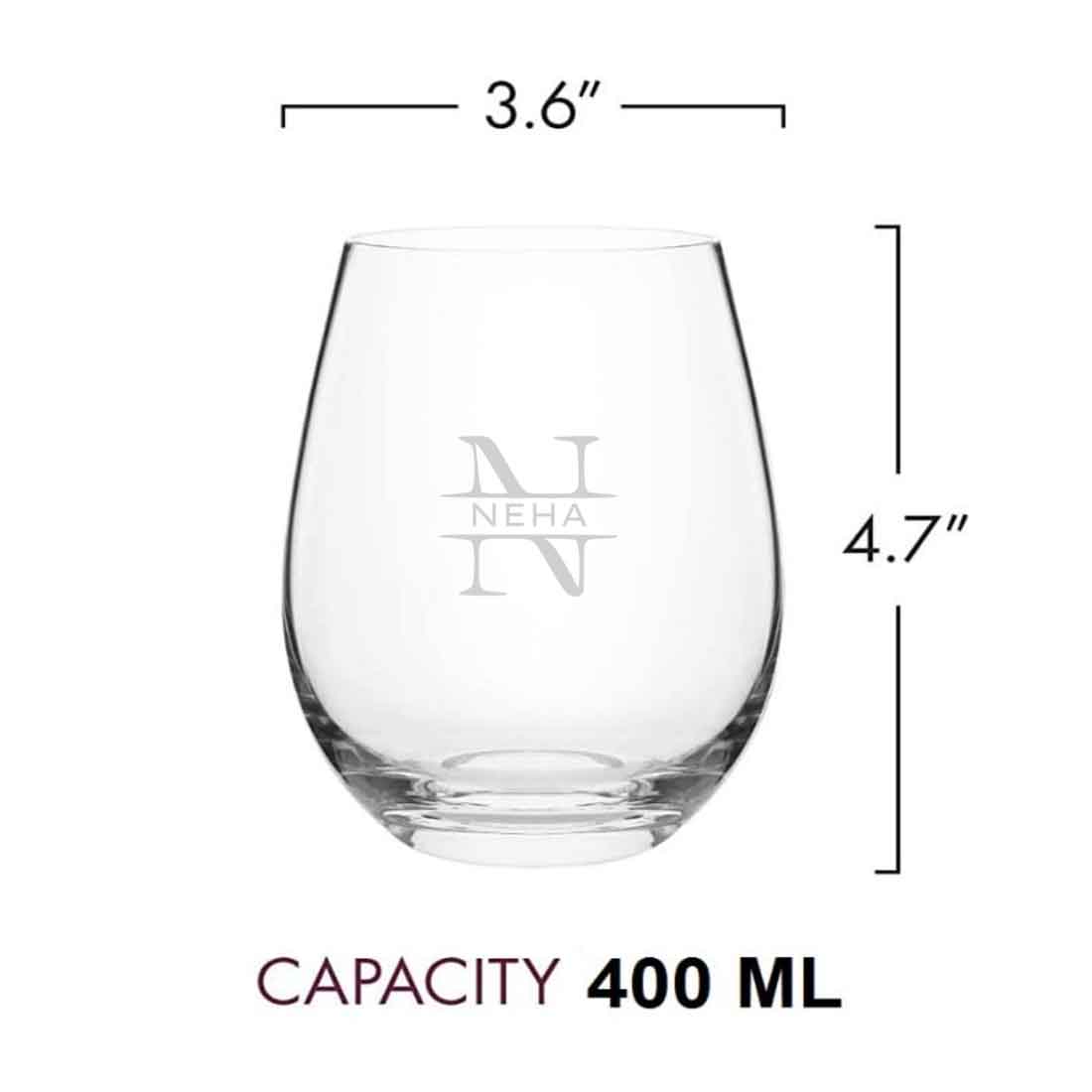 Custom Engraved Whiskey Glass Stemless Wine Glasses with Monogram Name 400 ML