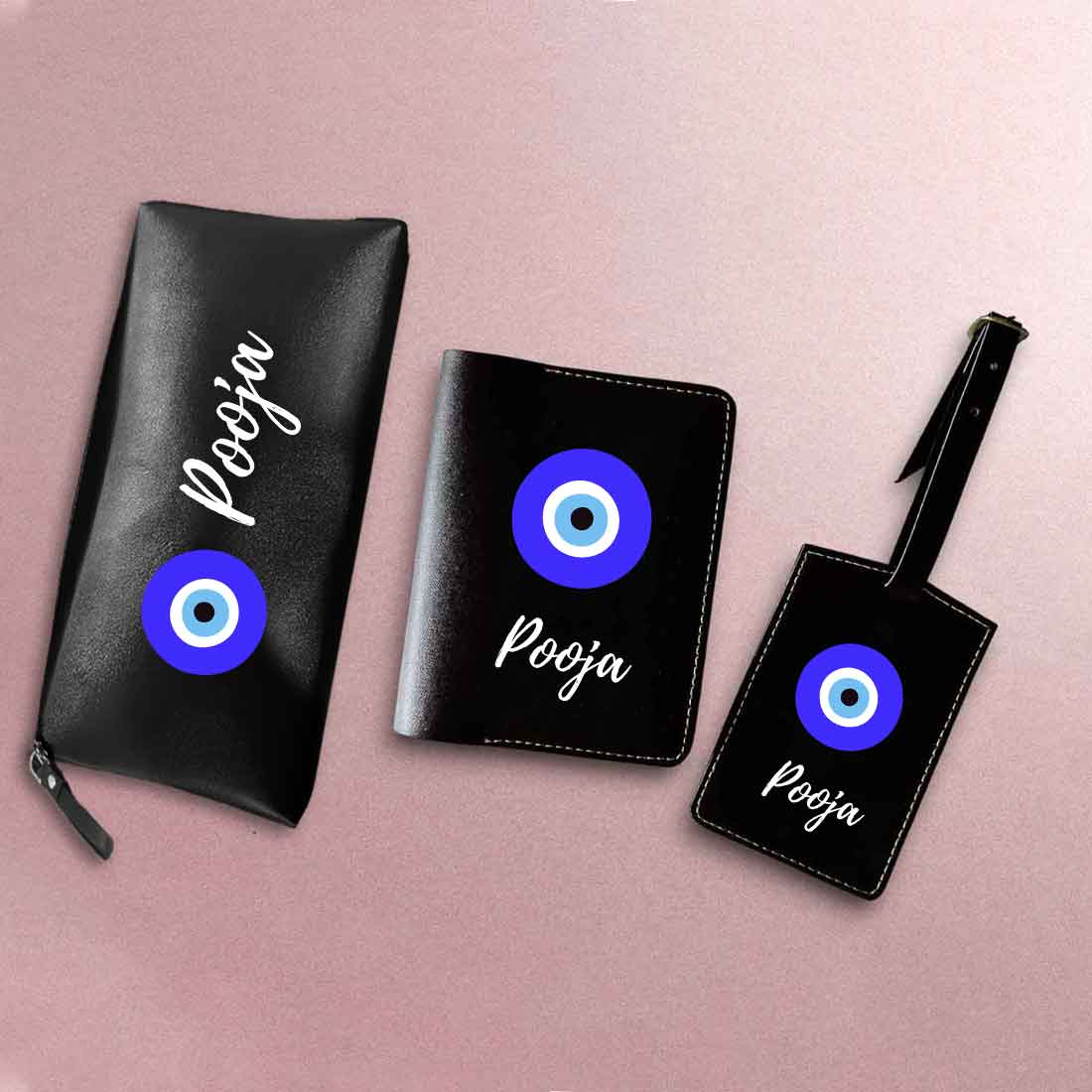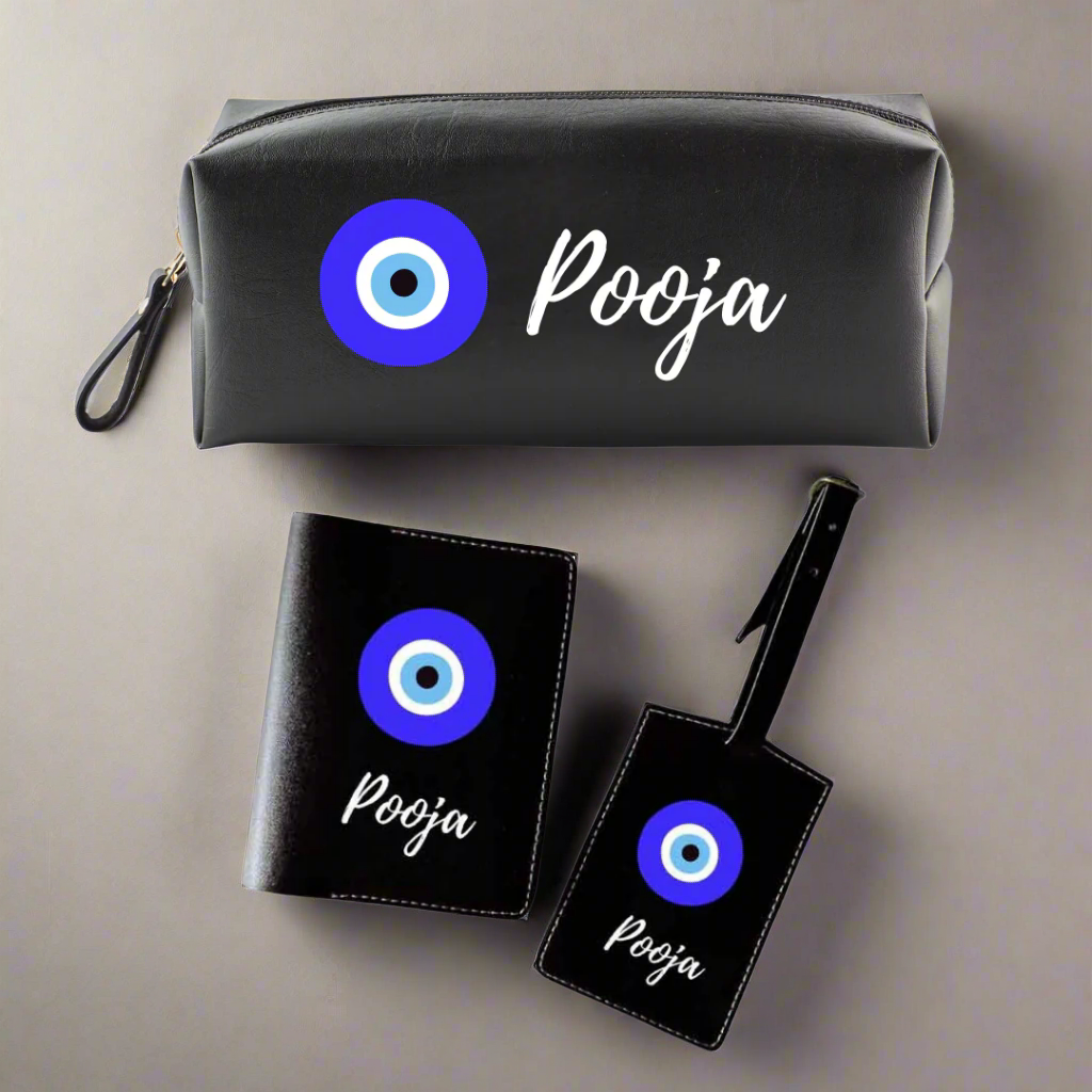 Personalized Travelling Pouch, Passport Cover & Luggage Tag with Evil Eye Design