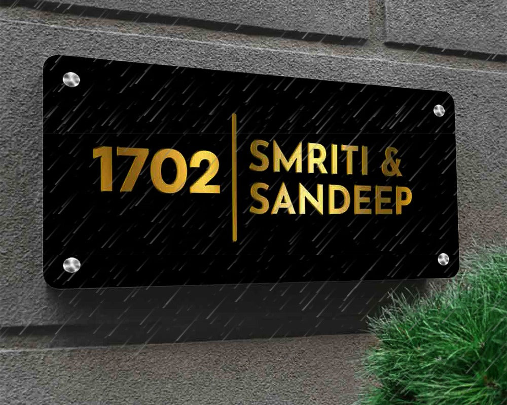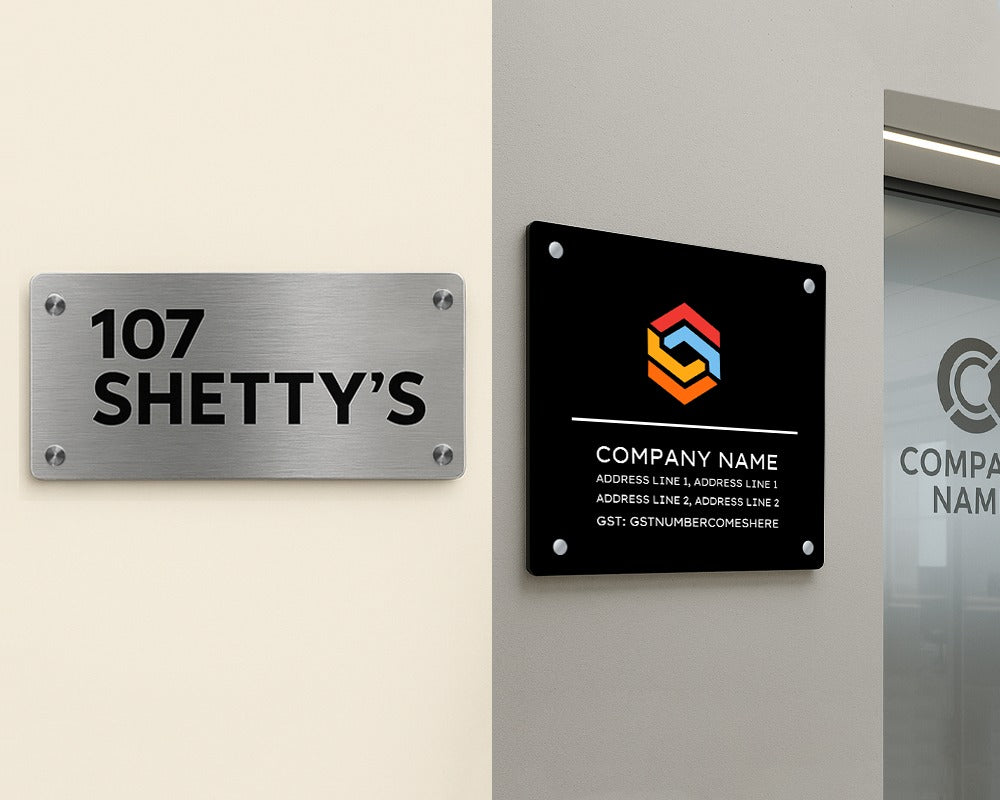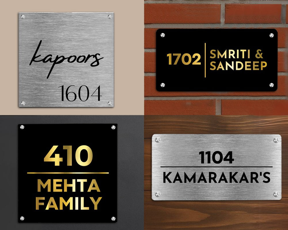 The name plate includes 4 premium metal studs for secure wall mounting. Once installed, it gives a sleek, elevated, and classy look.