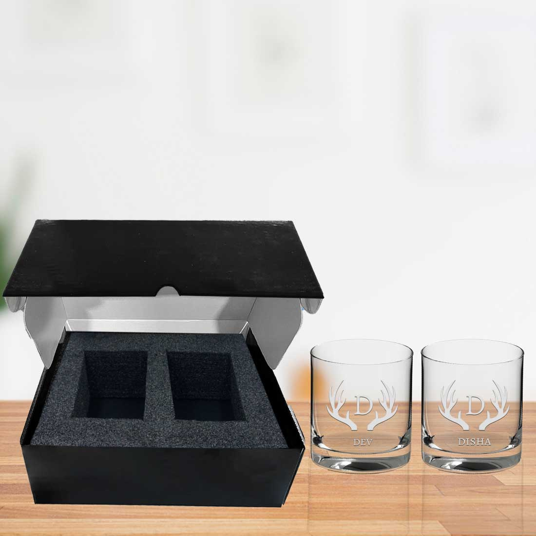 • Includes: Personalized Whiskey Glass Set (2 units) and a Gift Box