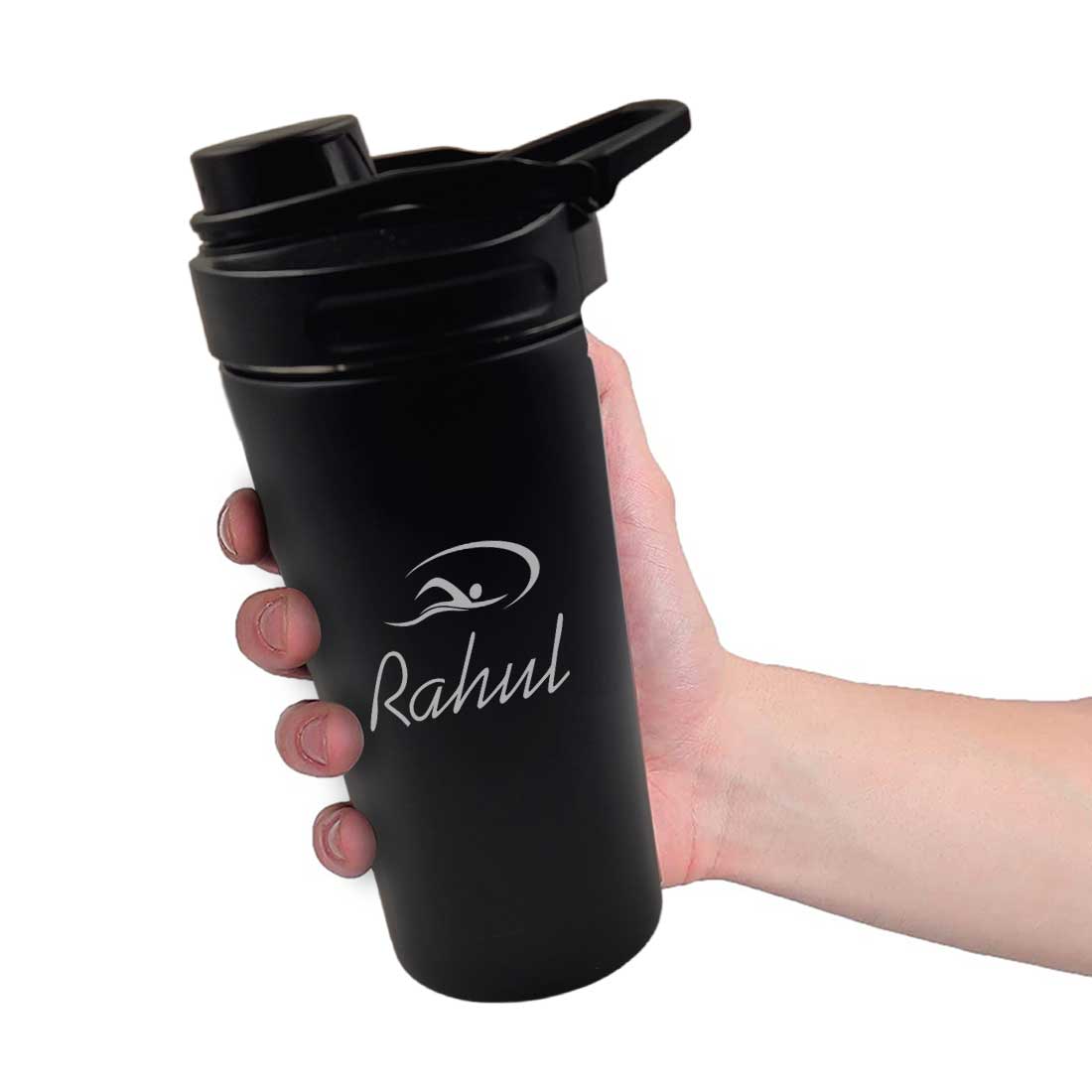 Customised Weight Gainer Shaker Bottle Stainless Steel Protein Mixer with Whisk Ball - Swimming