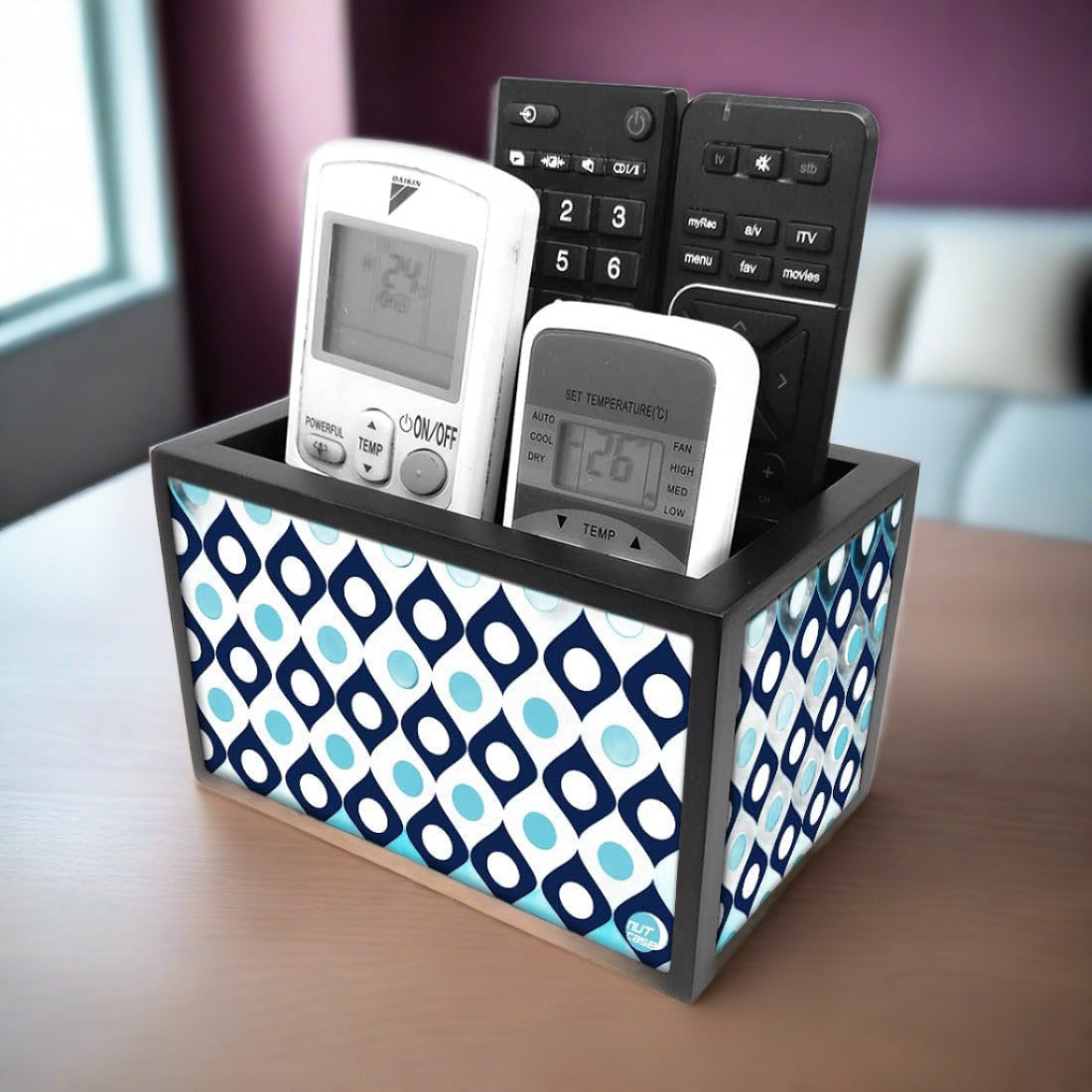 Keep it on a side table and Nutcase remote organizer ensure all the remotes are neatly kept and easy to find