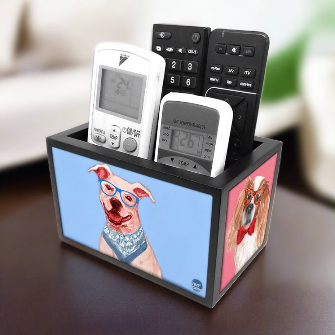 Keep it on a side table and Nutcase remote organizer ensure all the remotes are neatly kept and easy to find