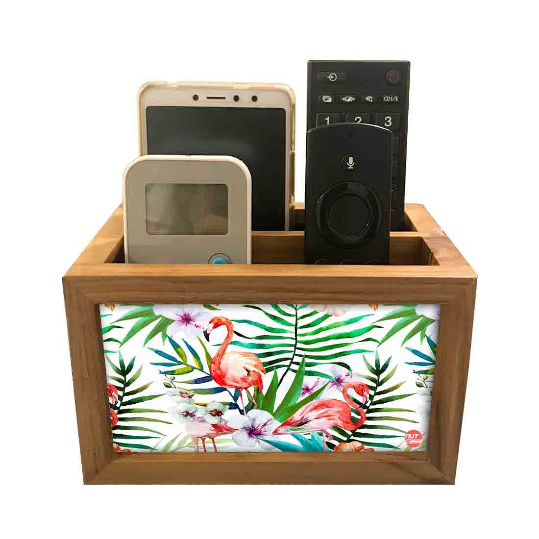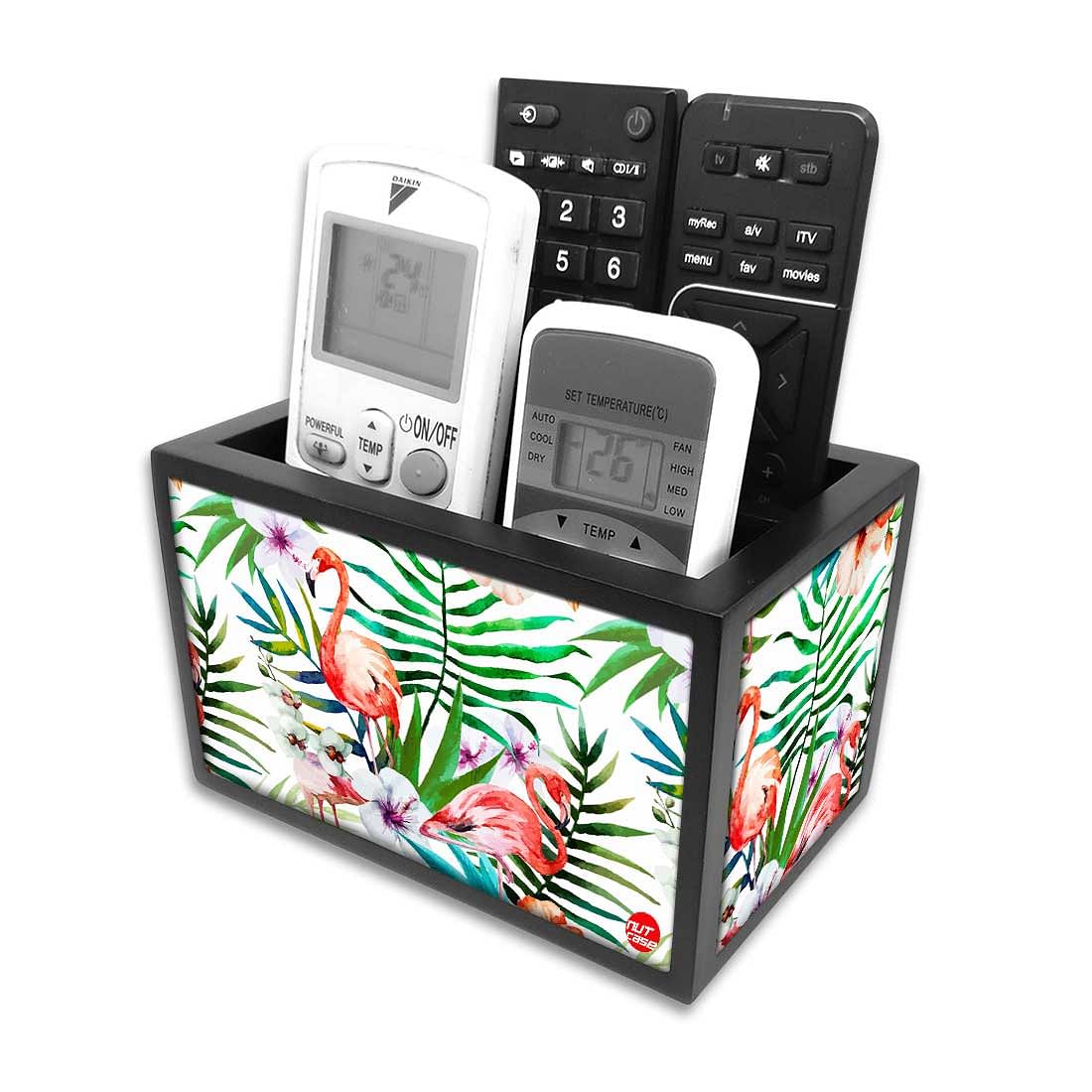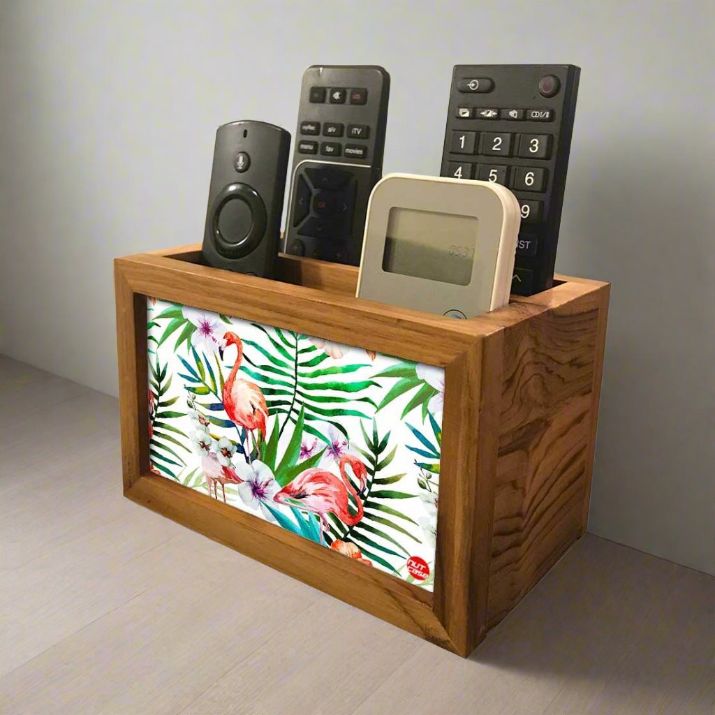 Cool Remote Control Holder For TV / AC Remotes - White Hibiscus Leaves With Flamingo