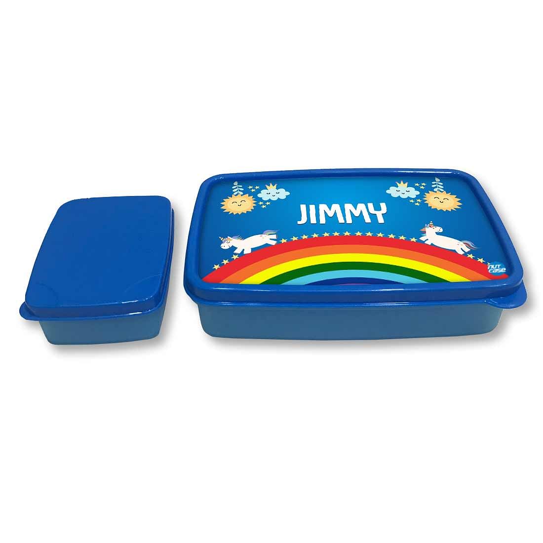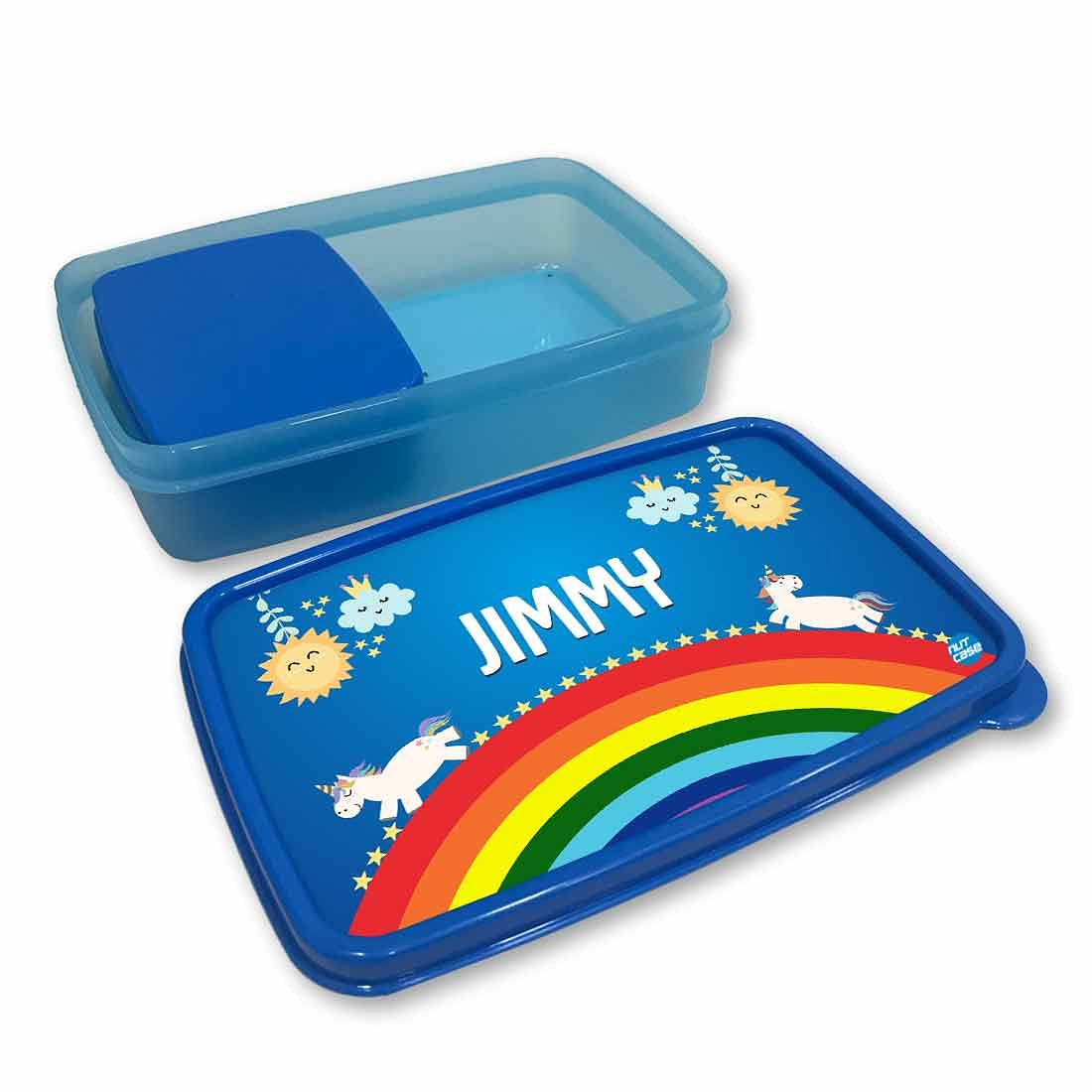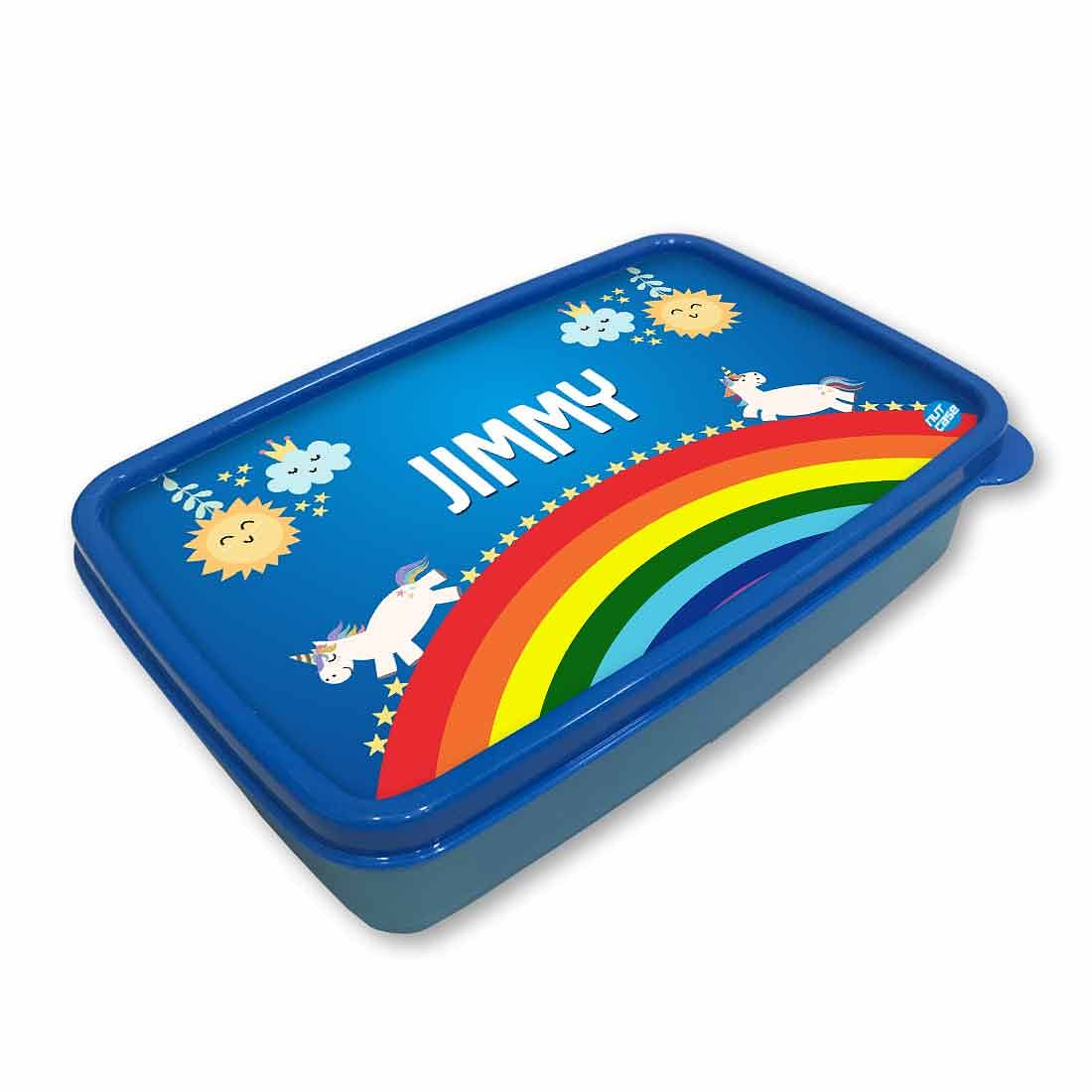 Personalized Snack Box for Kids Plastic Lunch Box for Boys -Rainbow & Unicorn