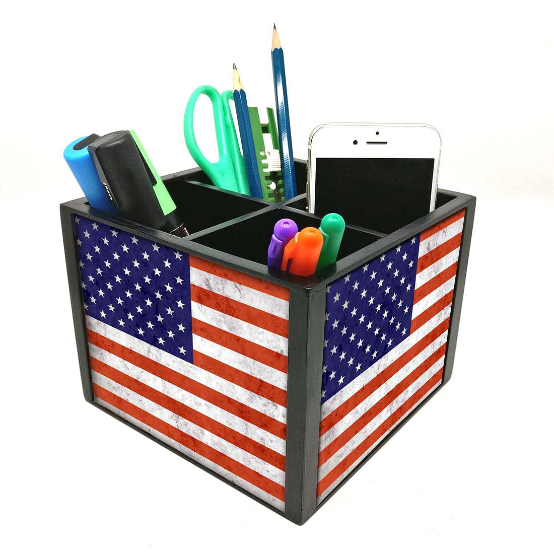 Desk Organizer For Stationery - Vintage USA Flag