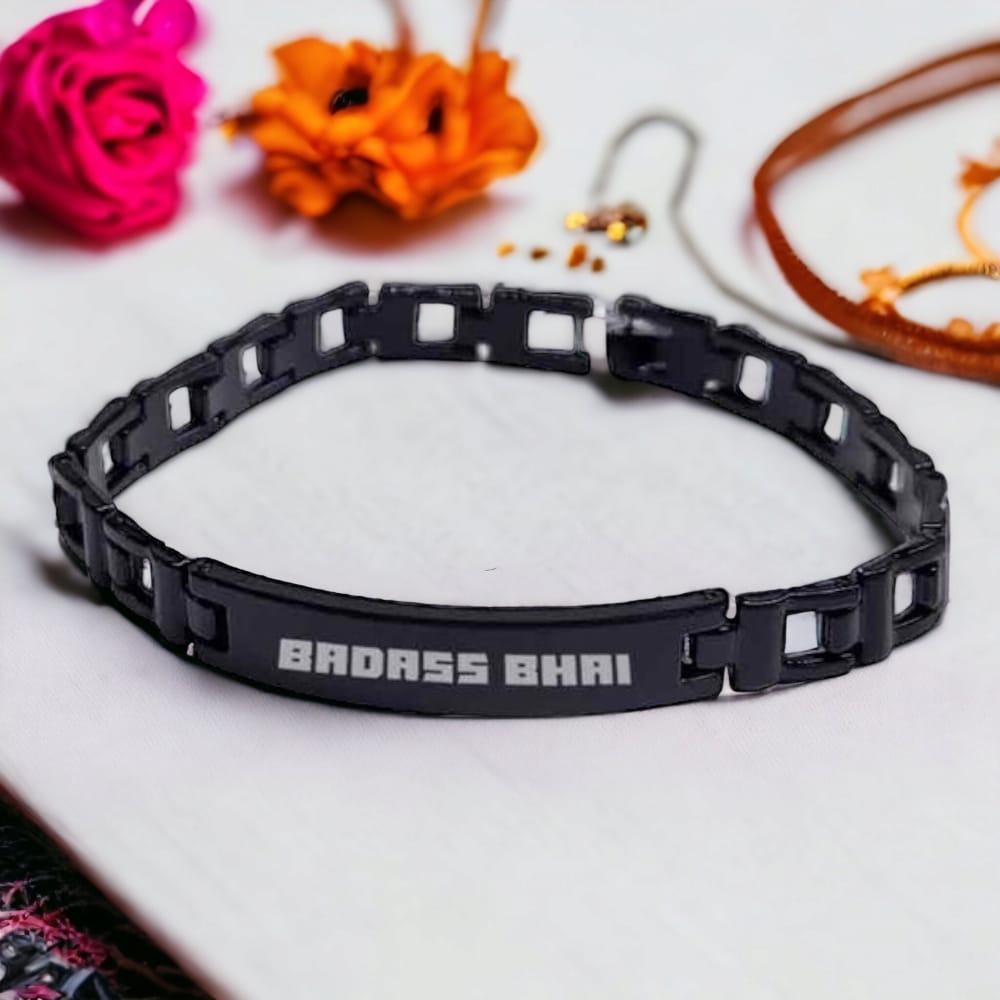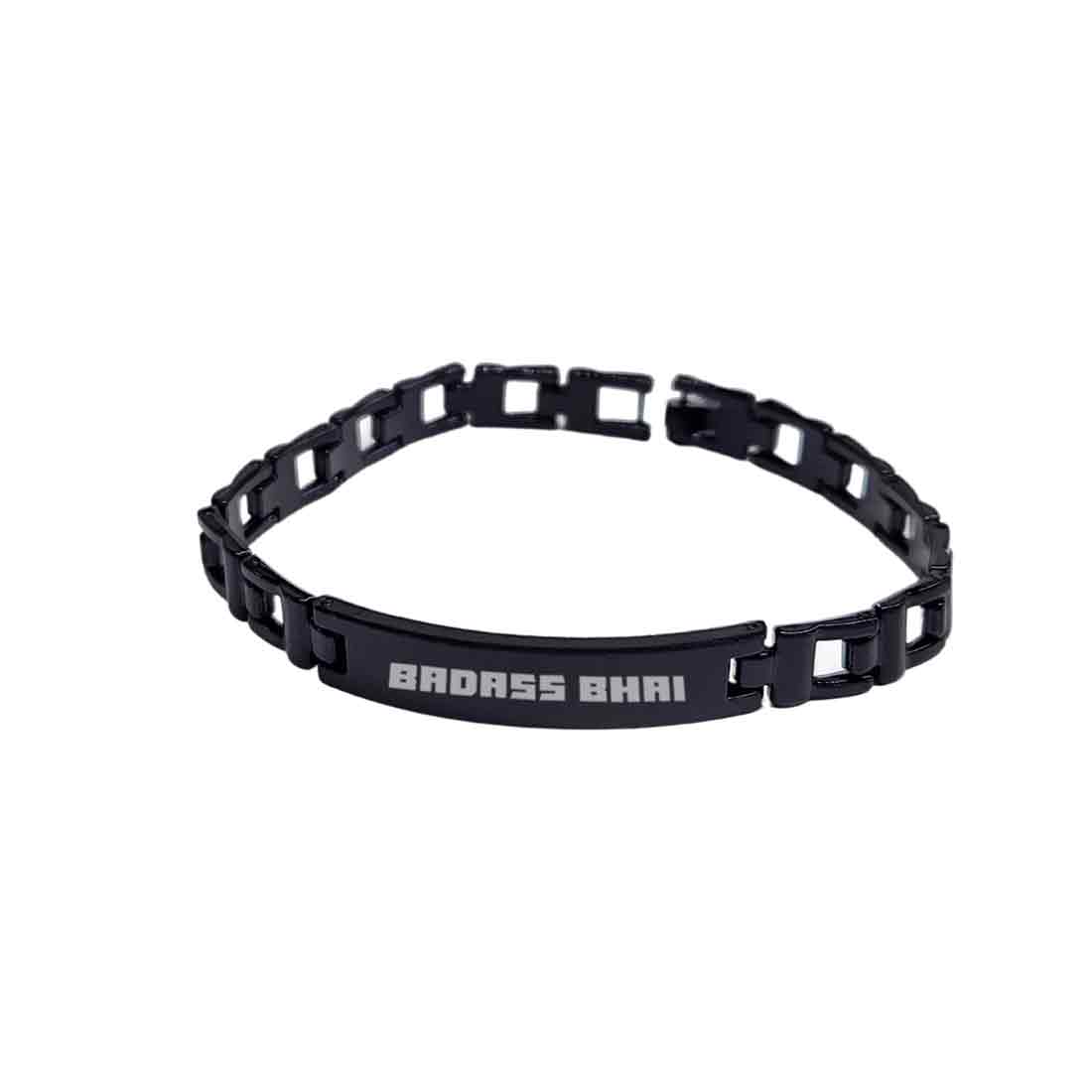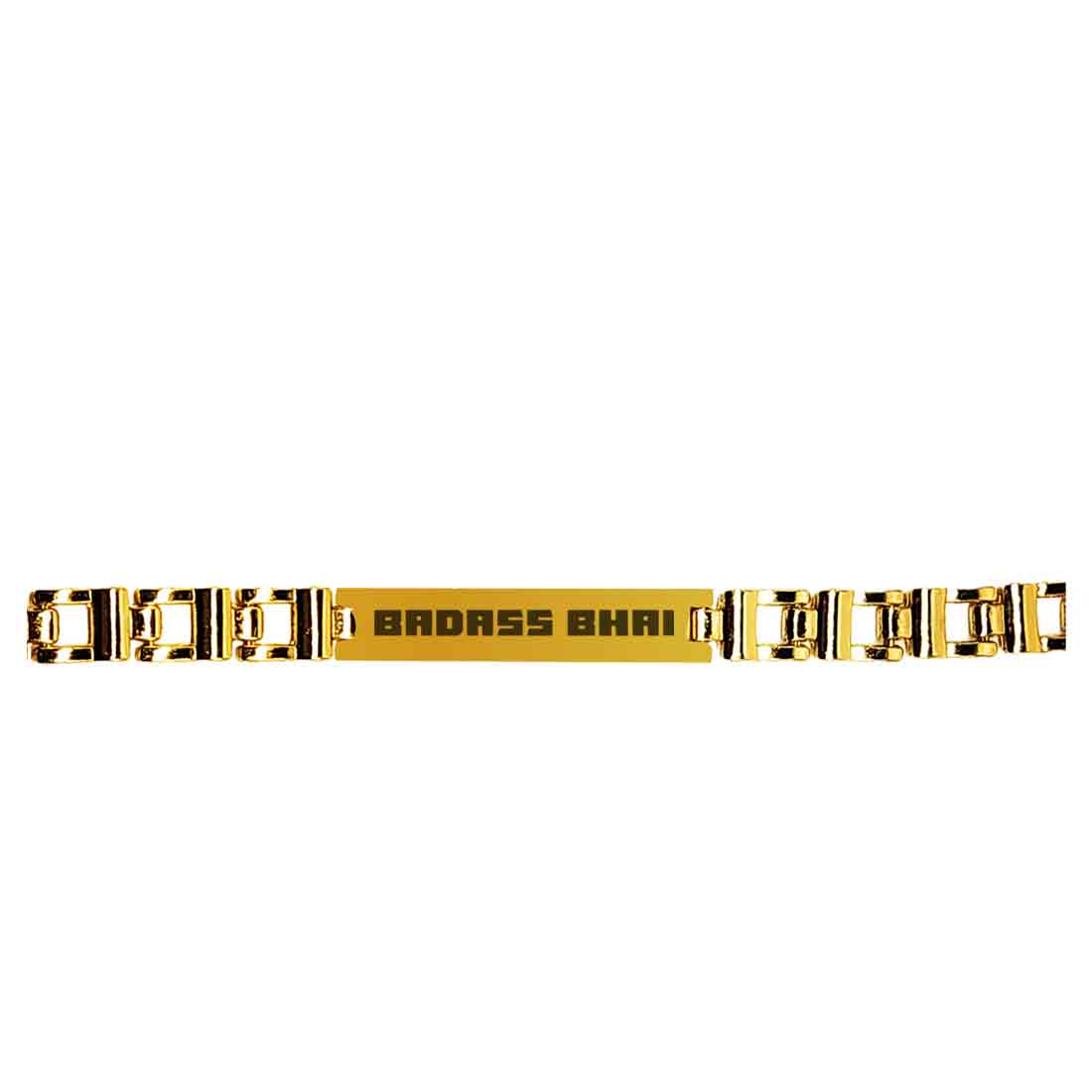 Stylish Rakhi For Brothers Metal Bracelet Black & Golden Rakhis- Badass Bhai