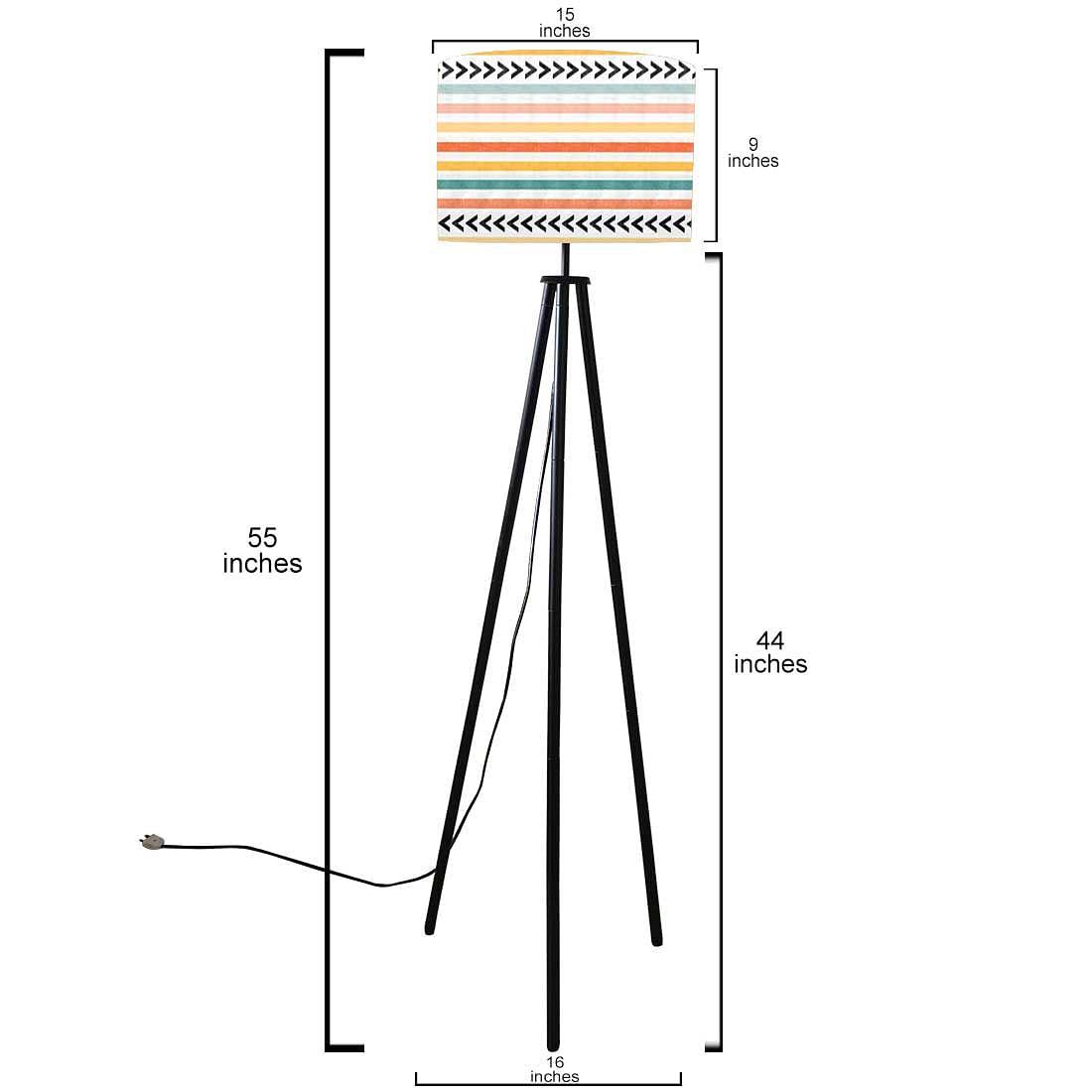 Tripod Floor Lamp Standing Light for Living Rooms -Grunge Stripes