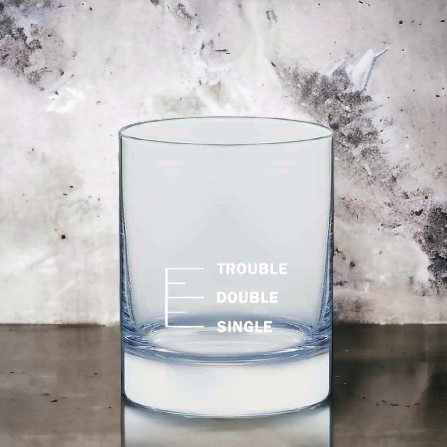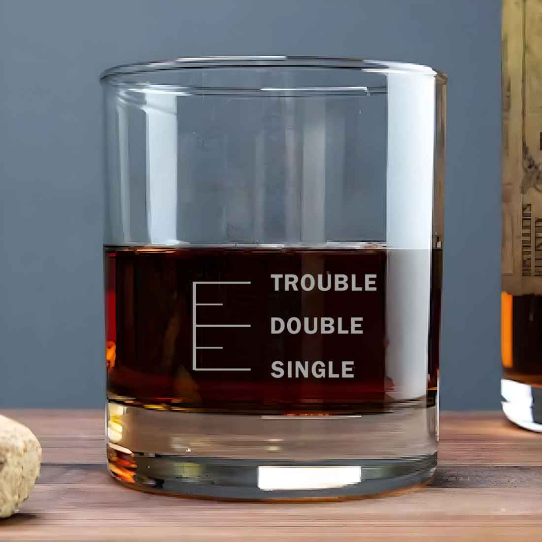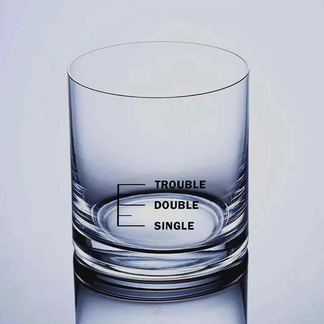 Unique Whiskey Glass with Measurement Peg - SINGLE DOUBLE TROUBLE
