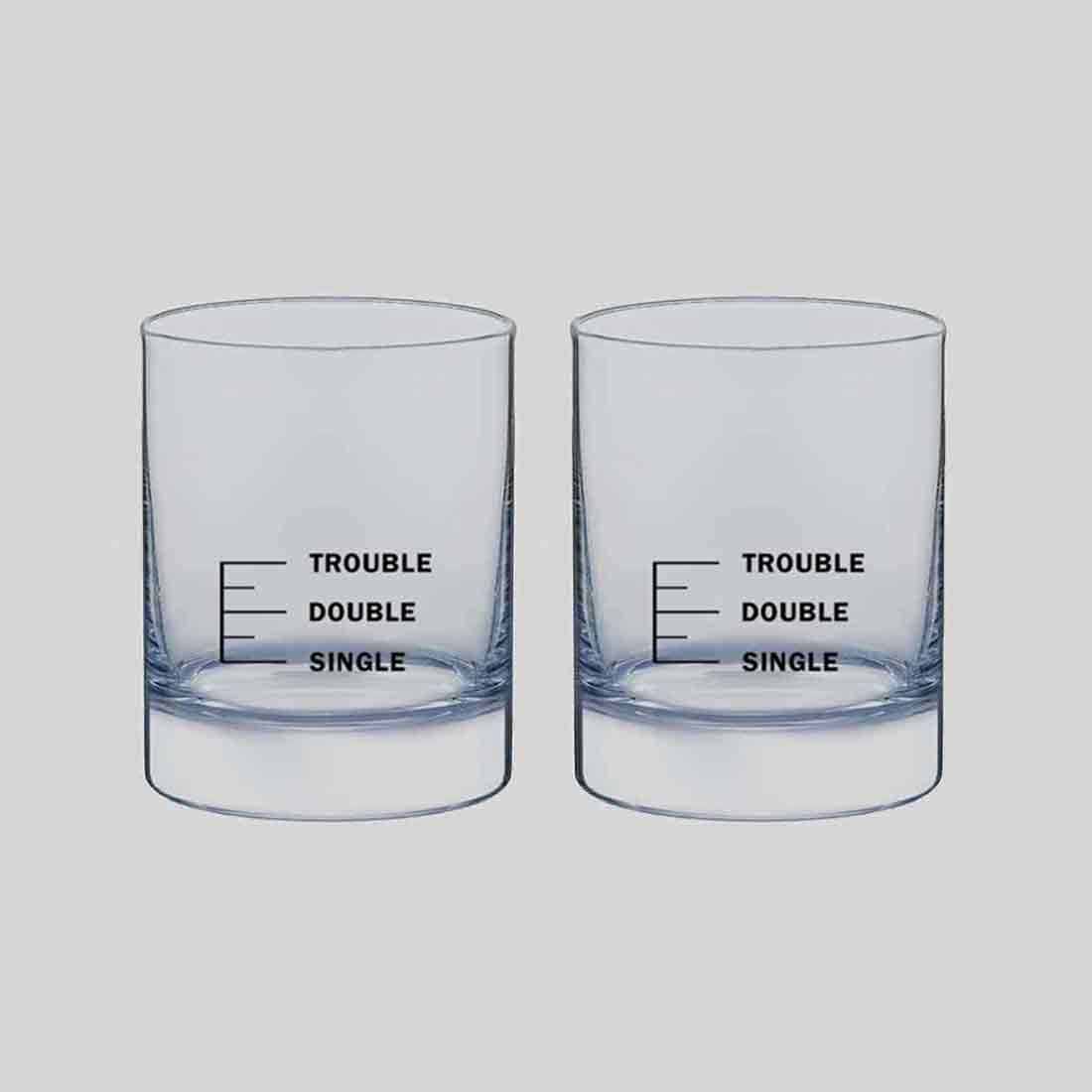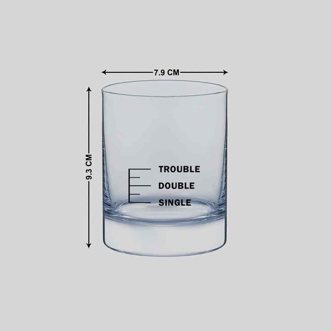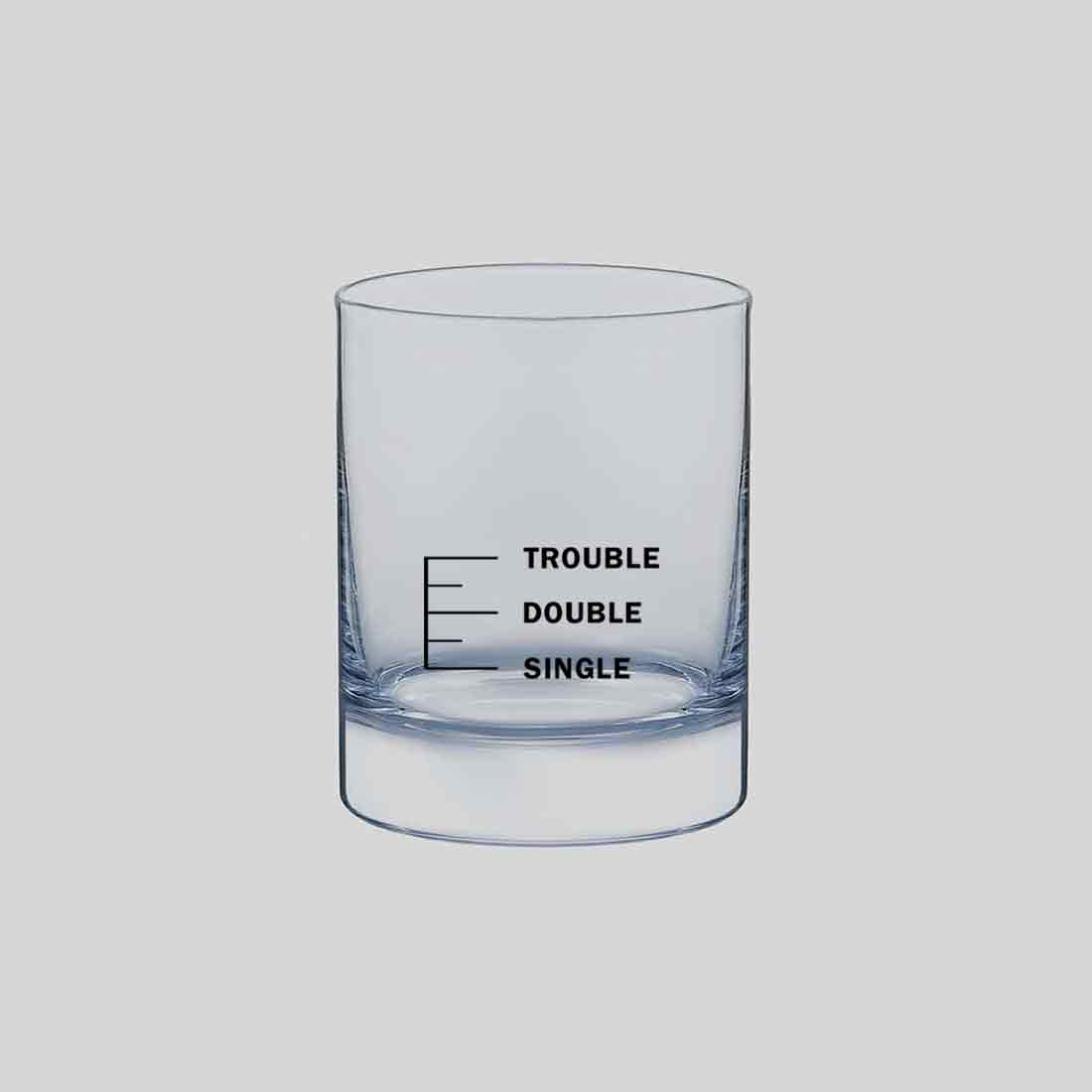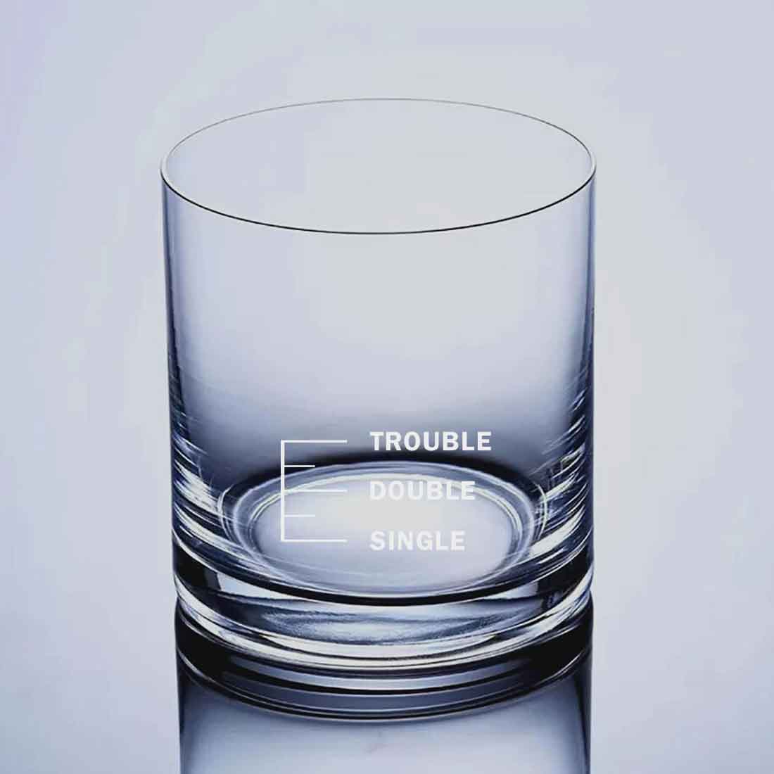 Unique Whiskey Glass with Measurement Peg - SINGLE DOUBLE TROUBLE