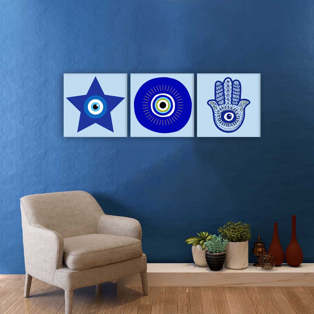 Pack of 3 Hanging Panels for Office Wall Art Decoration - Evil Eye Protector